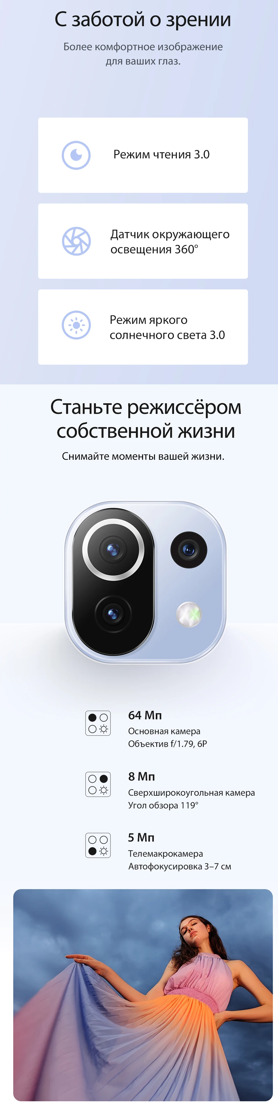 К телефону как таковому претензий нет. Получил то, что заявлено. одна претензия к продавцу... написано сюрприз по промокоду, однако ни промо-кода, ни, в итоге, сюрприза) Хотя достаточно хорошим подарком стала цена в текущих реалиях на фоне других магазинов. Доставка отличная даже почтой России, если бы не выходные, получил бы за 3 дня!