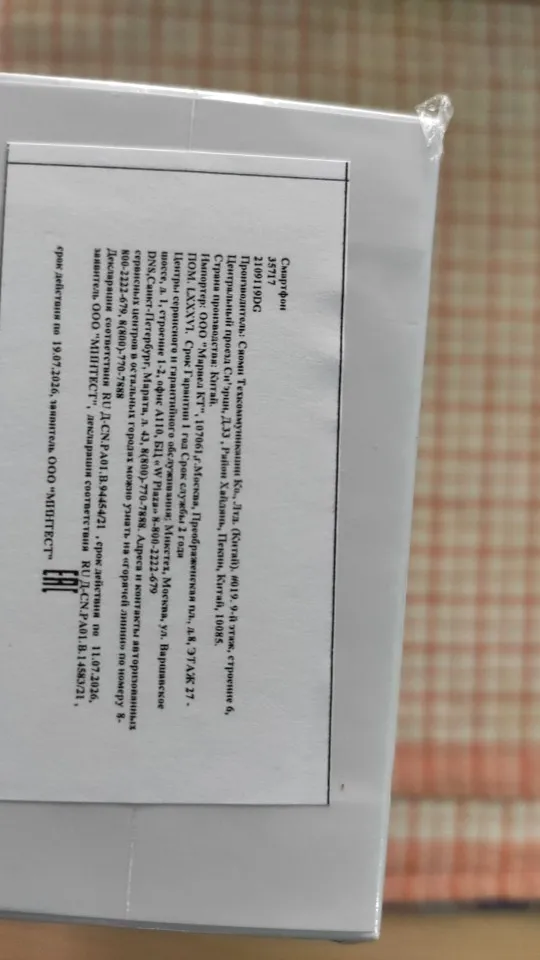 Посылка пришла на 8 дней позже обещанного срока . Общая коробка чуть смята , внутри все целое . Визуально телефон в порядке , включается , заряд был 40% , после проверки дополню отзыв !
