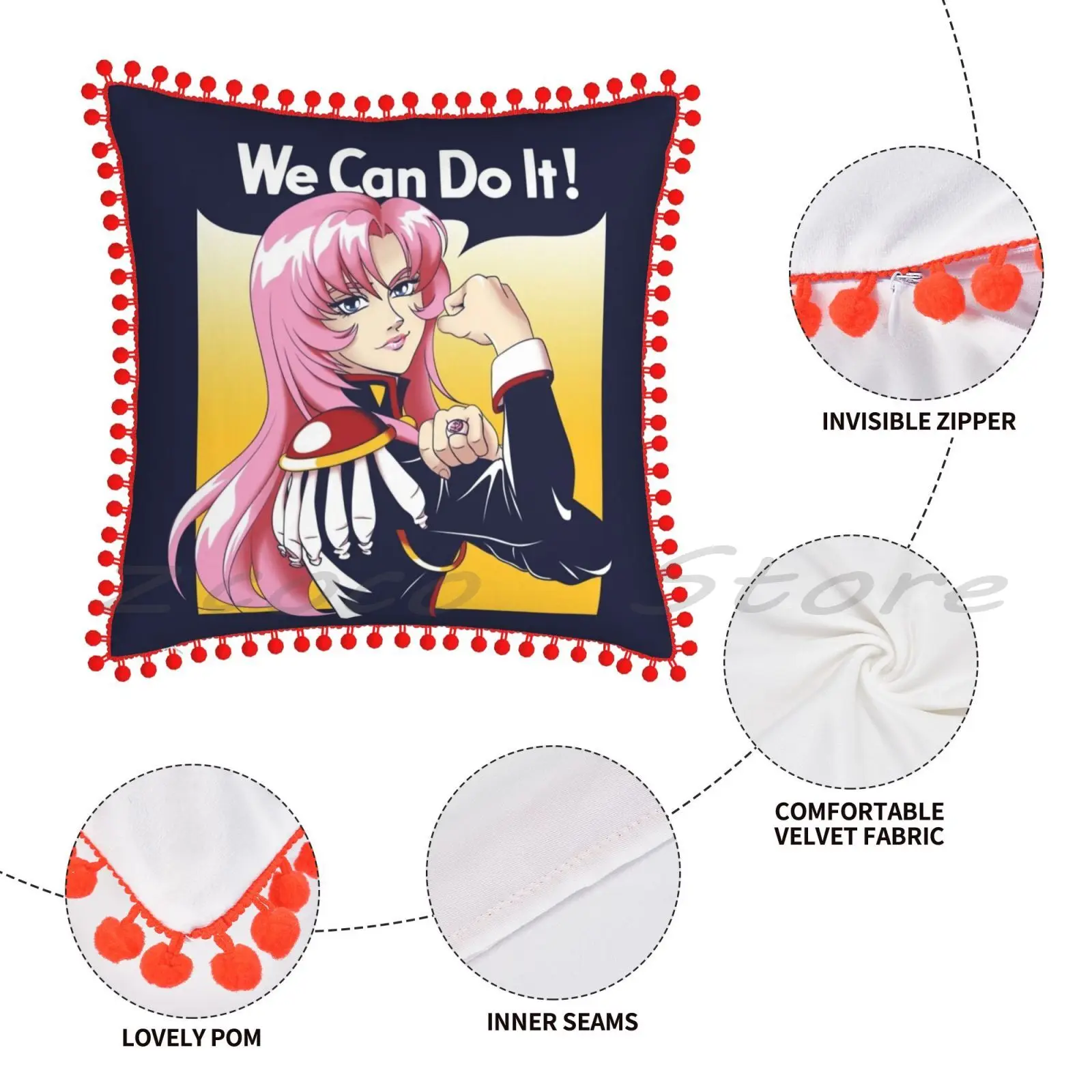 Utena может это сделать! Наволочка с надписью, наволочка из хлопка и льна, плюшевый помпон, революционная наволочка для девушек, Utena, Shoujo Kakumei