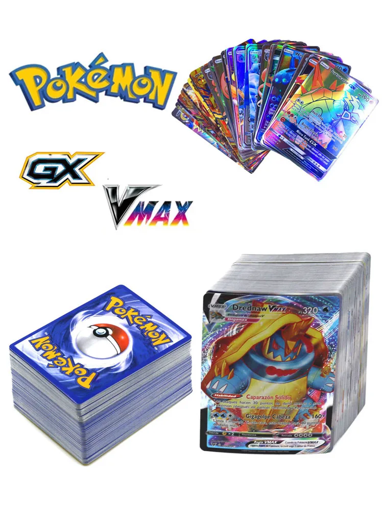 Карты Pokemon 100VMAX 100 GX, 50-200 шт., лидер продаж, детская бит...