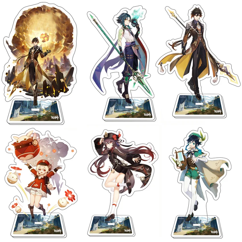 Аниме Фигурка Genshin Impact Zhongli разбавленная Venti Klee Keqing Qiqi фотопластина настольное украшение стоячий знак Поклонники подарки