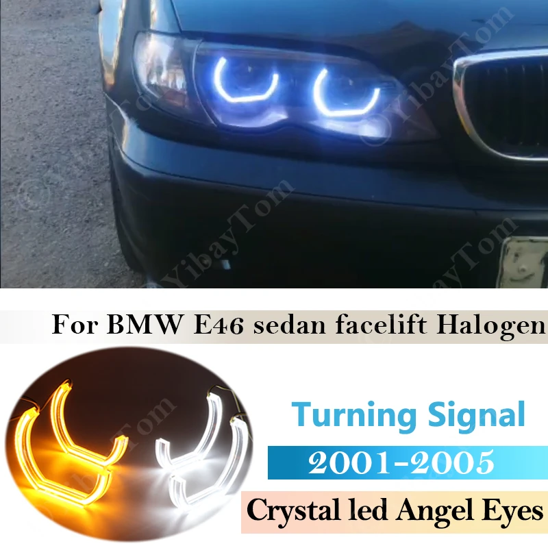 Поворотный сигнал, кольца с ореолом, световые комплекты DTM, Кристальные светодиодсветодиодный глаза ангела для BMW 3 серии E46 седан, фара Facelift, Автомобильная галогенная фара желтого цвета