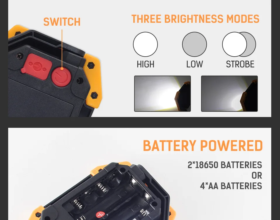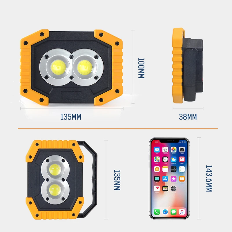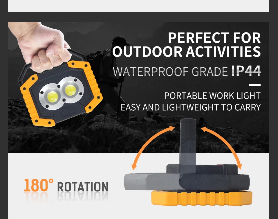 Широкое использование: этот рабочий светильник имеет много режимов (низкая яркость, высокая яркость и стробоскоп) и отлично подходит для использования в помещениях и на открытом воздухе, например, для ремонта автомобилей, мастерской, строительной площадки, работы, кемпинга, аварийные ситуации, Пешие прогулки, охота, исследование, поиск и так далее.