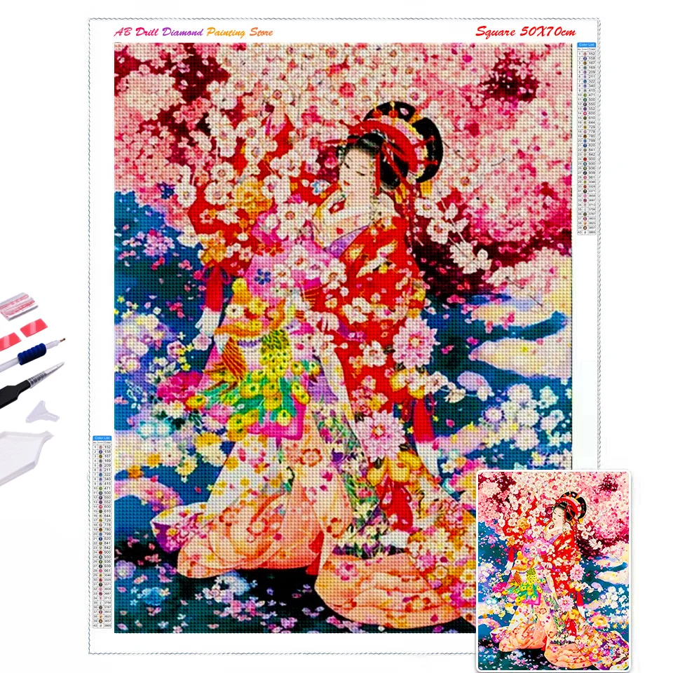 Набор для алмазной живописи гейши, мультяшное ПолноразмерноеКруглое...