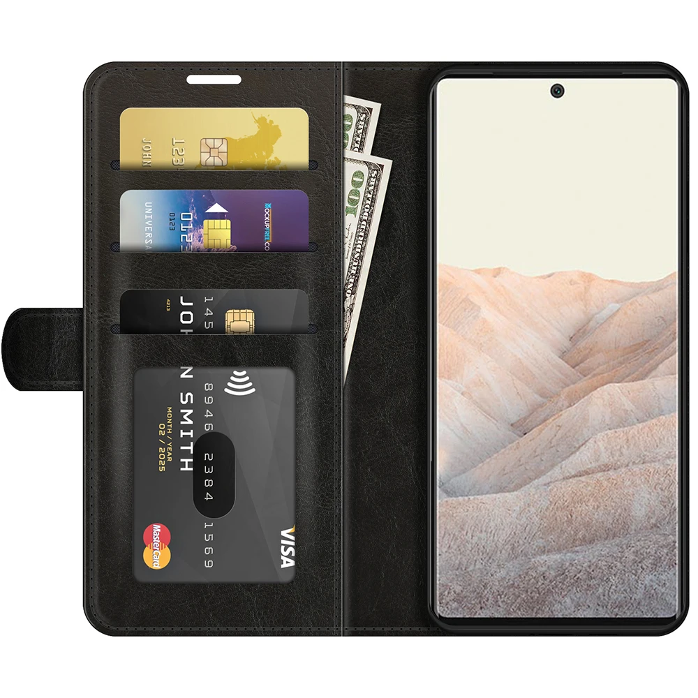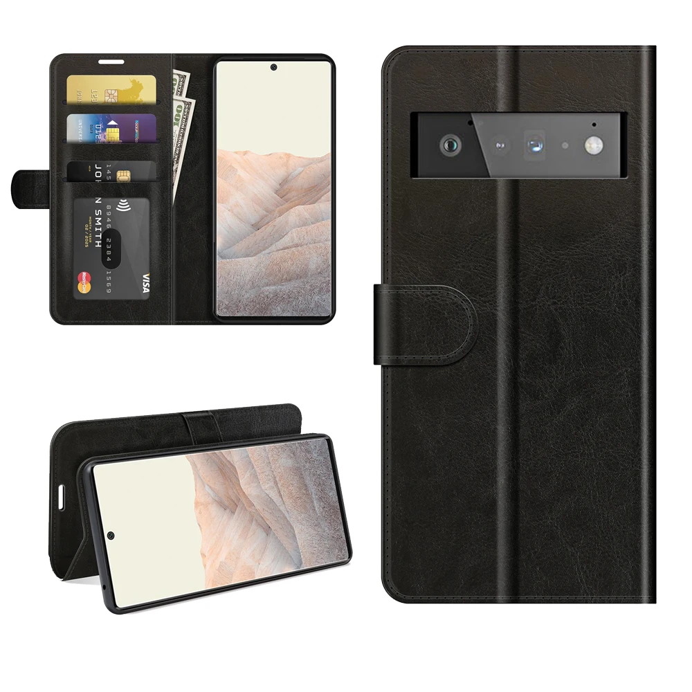 Чехол для Google Pixel 6 Pro (6,7 дюйма), чехол-бумажник для карт, чехол-книжка из искусственной кожи, черный