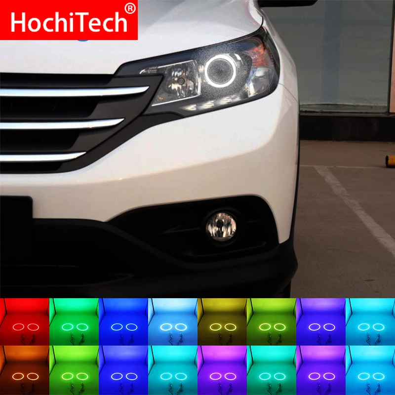 Новейшие разноцветные светодиодные фары RGB ангельские глазки, кольцевые глазки, ДХО, Радиочастотный пульт дистанционного управления для Honda CR-V CRV 2012 2013, аксессуары