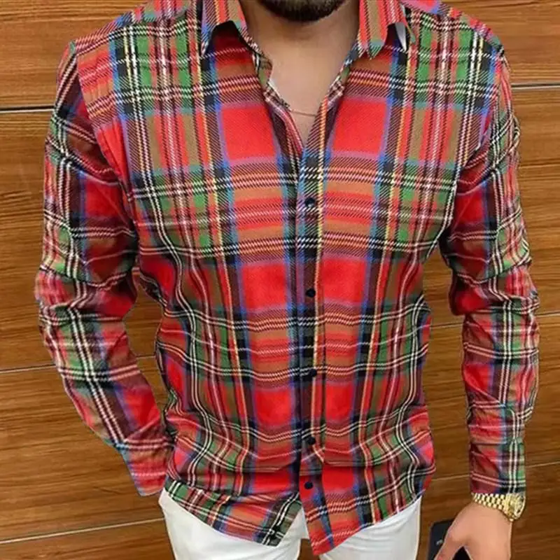 Рубашка мужская с длинным рукавом, повседневная в клеткув полоску, ...