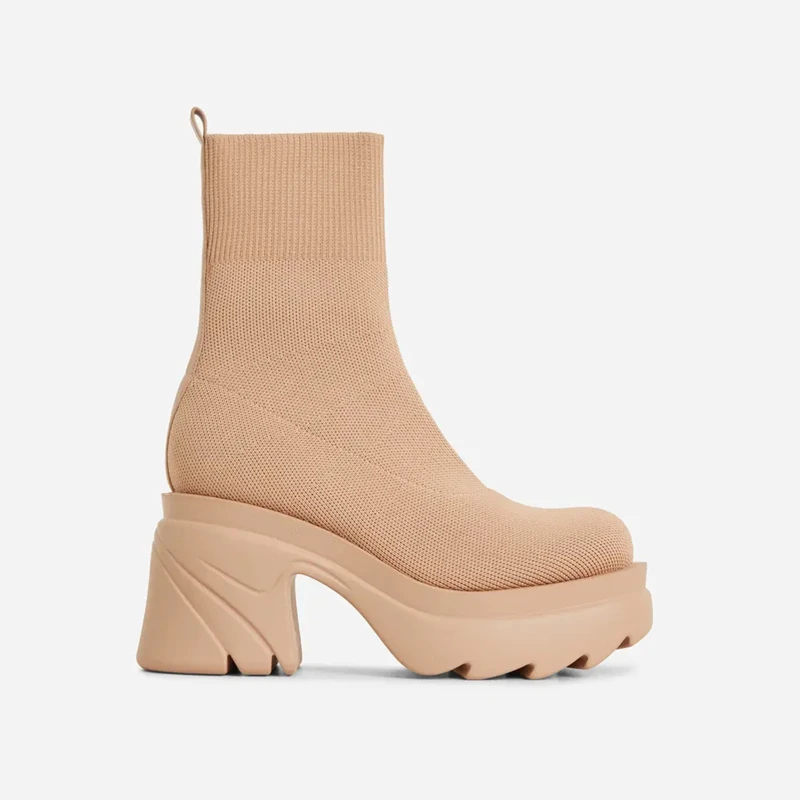 Женские вязаные ботинки, повседневные ботинки на толстой подошве, сетчатые красные короткие сапоги, большие размеры, Осень-зима 2022