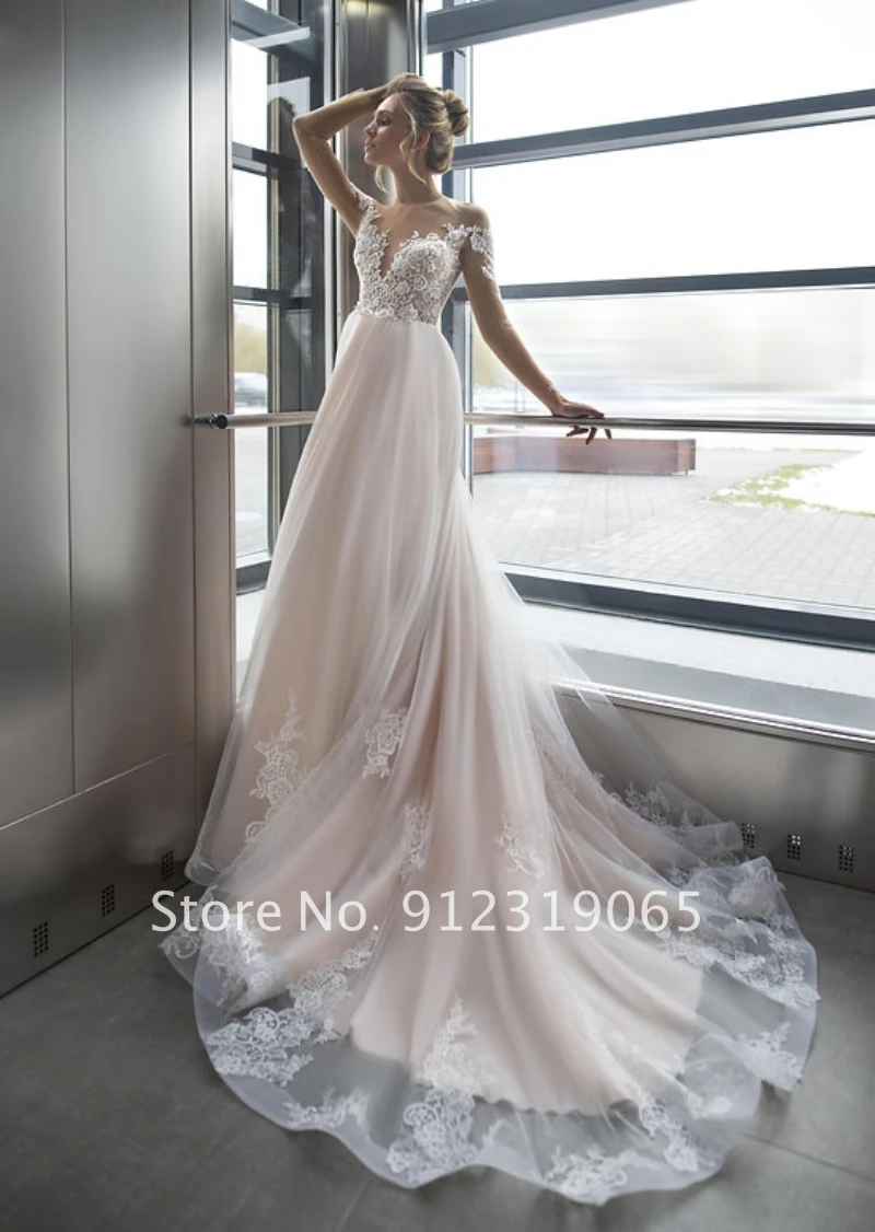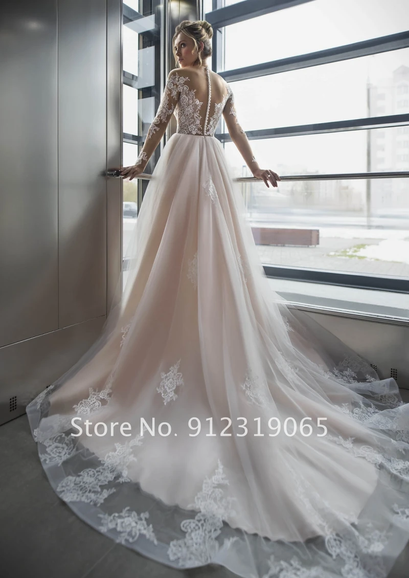 Романтические Прозрачные Свадебные платья с длинным рукавом, тюлевые кружевные свадебные платья с аппликацией на спине, платья для невесты