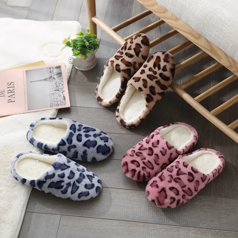 Хлопковые тапочки с леопардовым принтом, плюшевые домашние бесшумные тапочки с мягкой подошвой для женщин, зимние теплые тапочки для мужчин и женщин, Zapatillas Casa