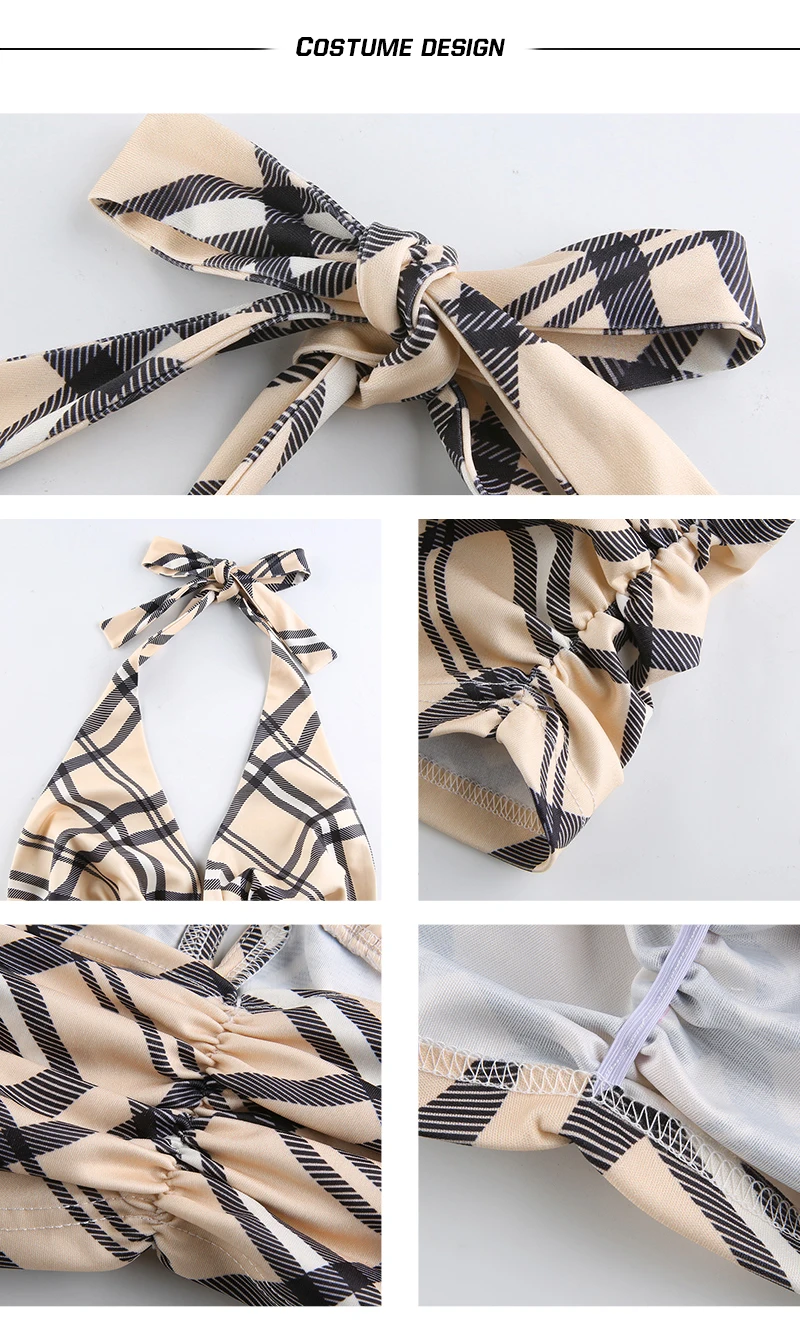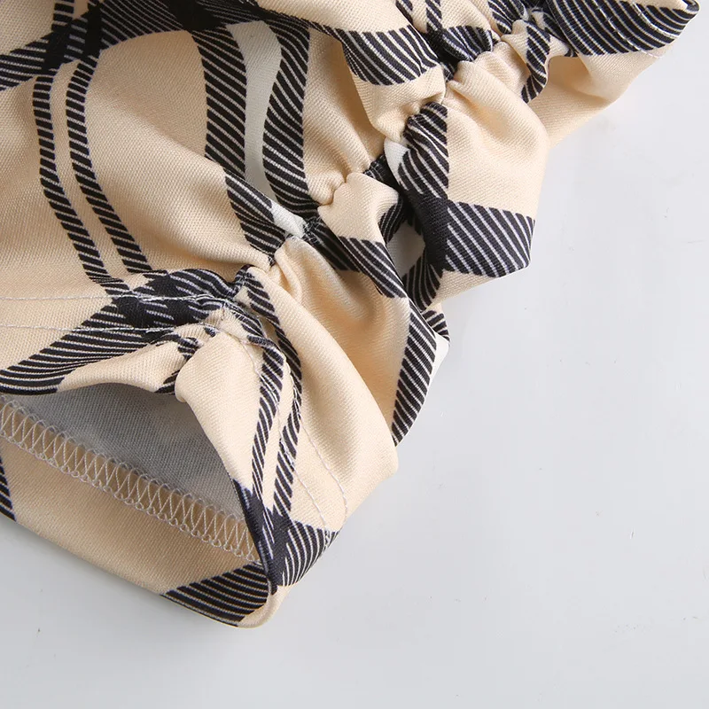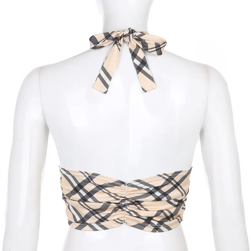 Женский клетчатый укороченный топ с открытой спиной и шнуровкой на пупке