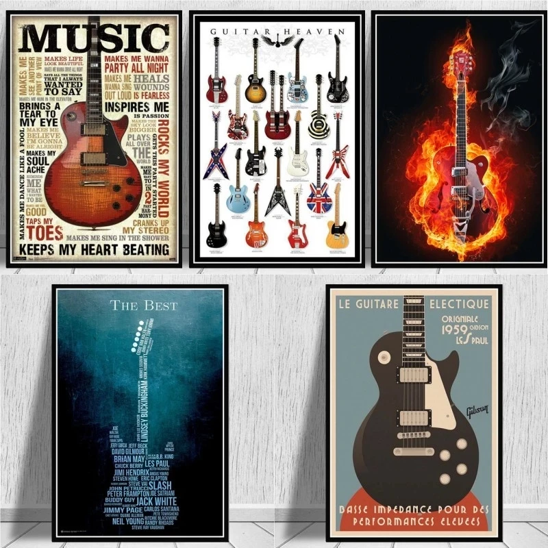 Картина на холсте, принты, картины, настенное искусство, гитары, инструмент, коллекция музыки, цитата, домашний Настенный декор, плакаты, эстетический декор комнаты