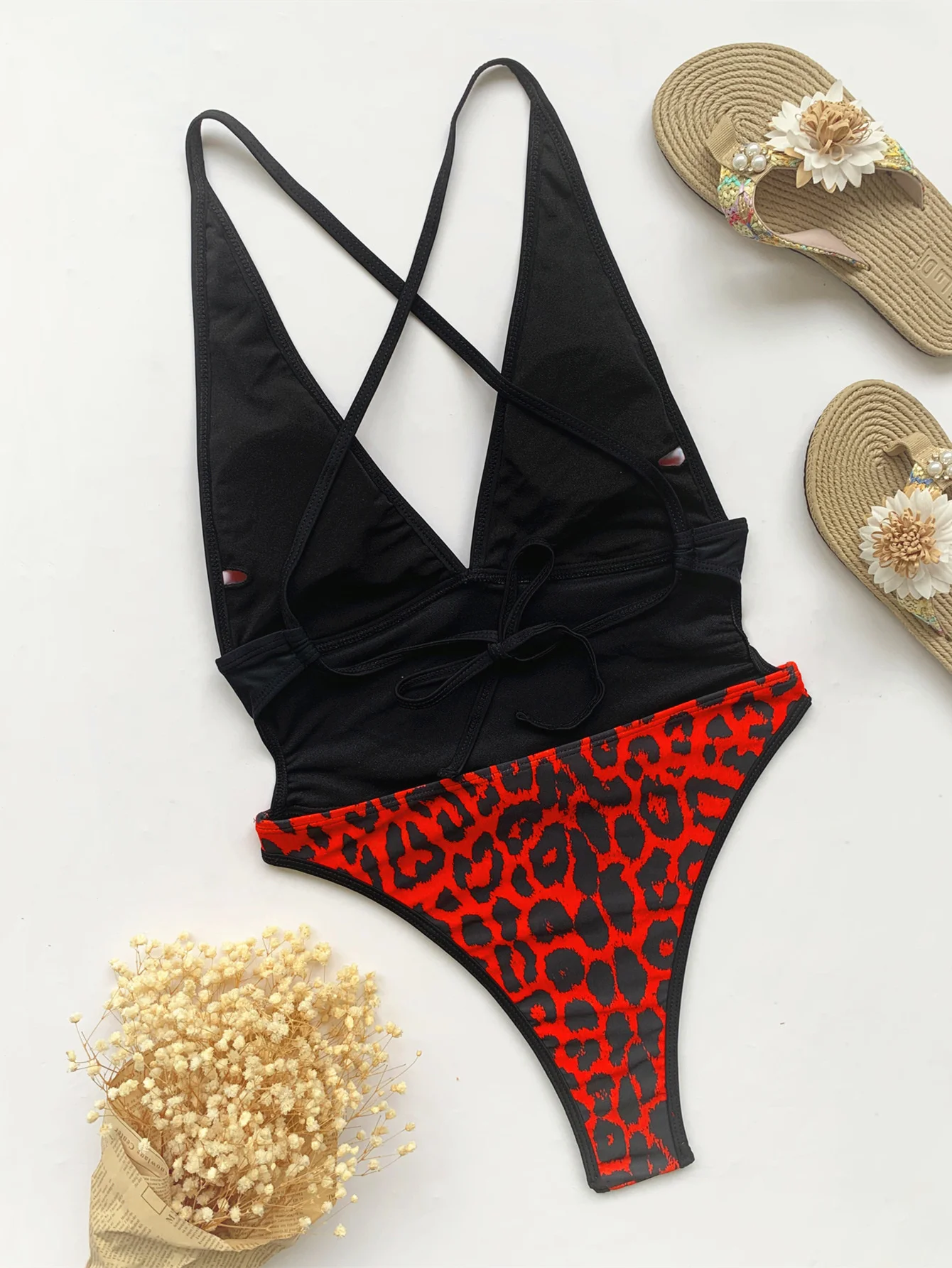 2022, сексуальный цельный купальник, глубокий v-образный вырез, женский купальник с леопардовым принтом, монокини, купальник для девочек, пляжный купальный костюм, бикини Mulher