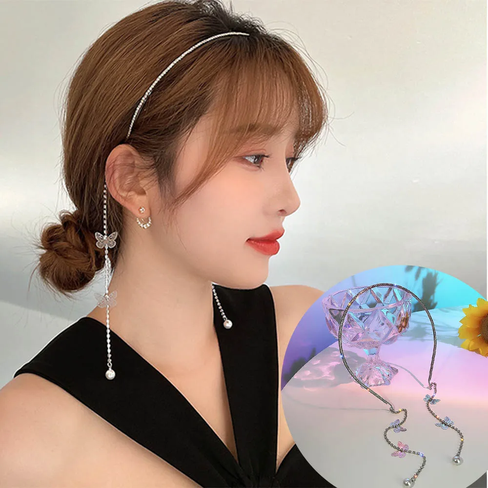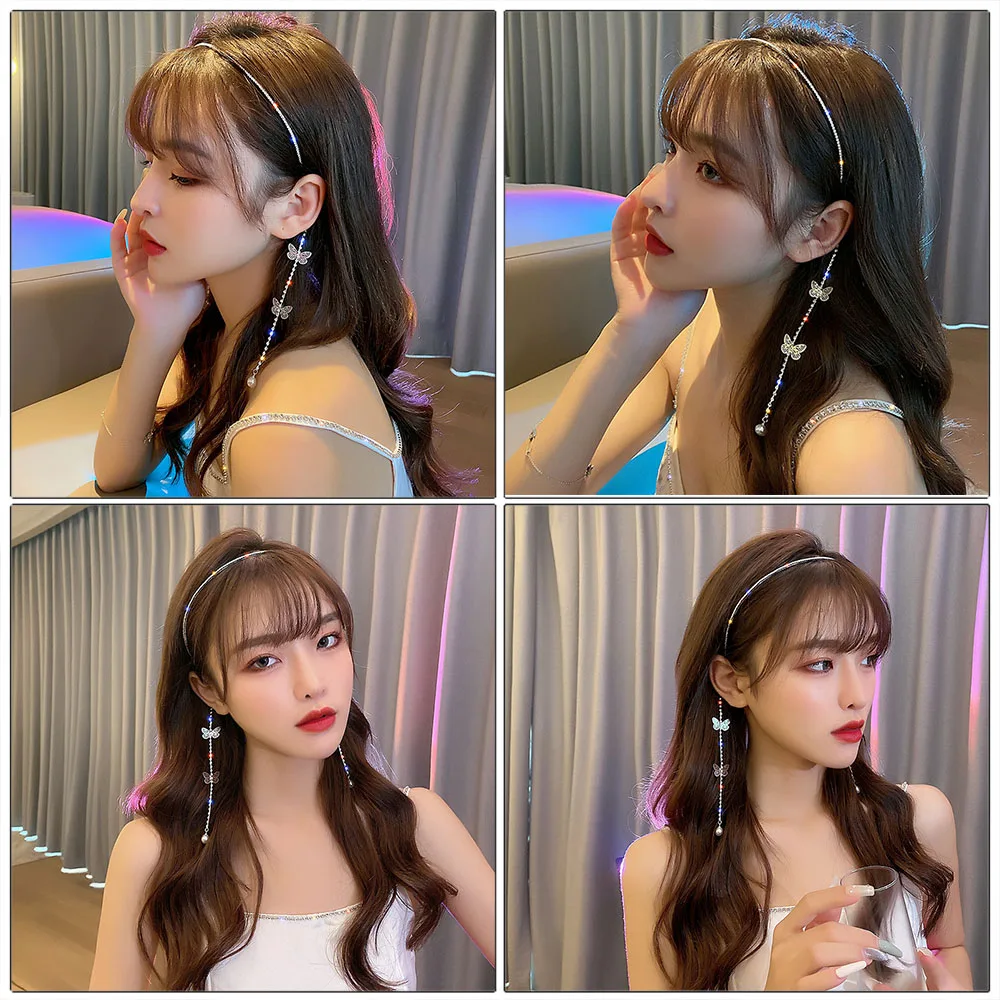 Обруч для волос с кристаллами, блестящие обручи Стразы с кисточками...
