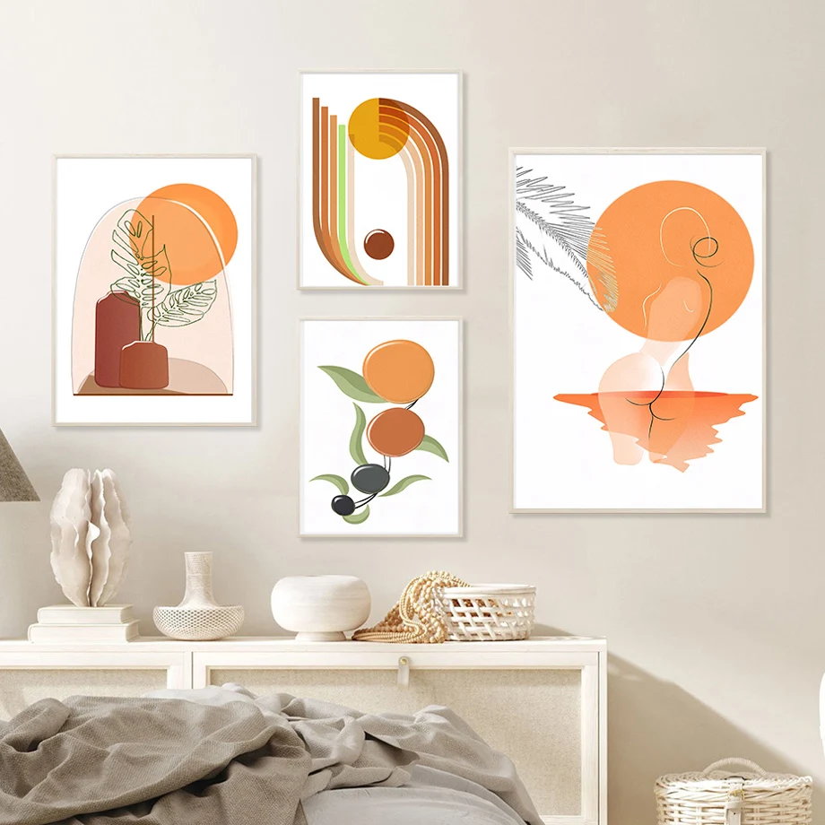 Абстрактная картина монстера солнце женщина растение Бохо настенная...