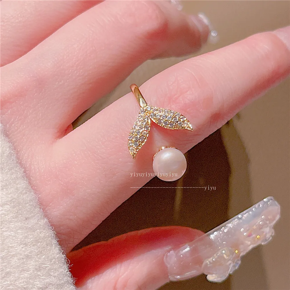 Изысканное роскошное Открытое кольцо рыбий хвост с регулируемым пресноводным жемчугом в стиле барокко женский браслет в подарок