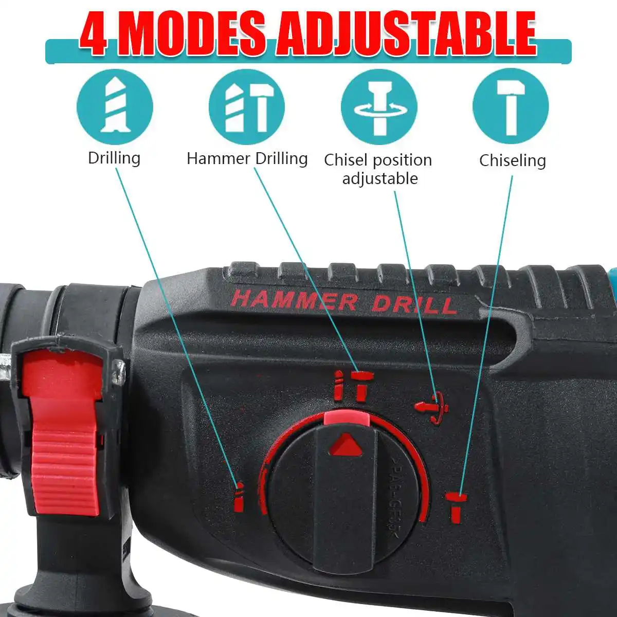 Особенности:● Многофункциональная комбинация костюма, включая электрический гаечный ключ/электрическую дрель/Электрический роторный молоток/угловую шлифовальную машину, работать вместе, чтобы сделать эффективность быстрее● Функция блокировки безопасности, эффективная защита● Большой медный сердечник, высокая прочность, низкое тепловыделение, лучший эффект удара● Один ключ вперед и назад● Эргономичная противоскользящая ручка обеспечивает комфорт и контроль