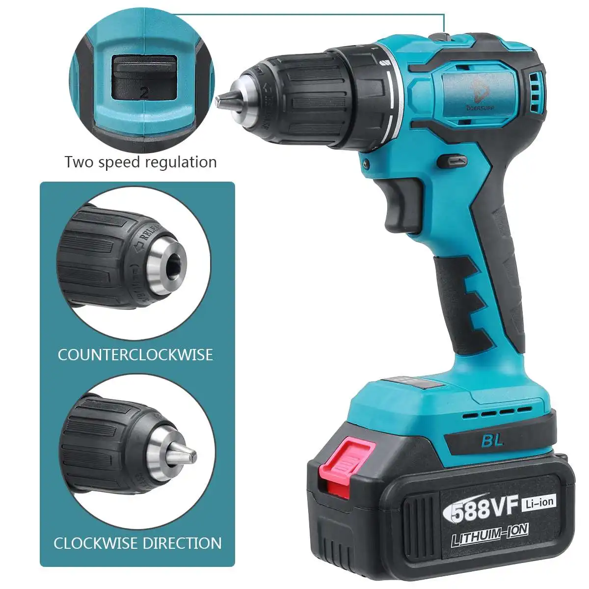 Без аккумулятора (для батареи Makita) Тип:1x угловая шлифовальная машина1 электрическая дрель1 электрический ключ1 Электрический роторный молоток1x вспомогательная линейка2x вспомогательная ручка1x разборный ключ1x пластиковая коробка1x Руководство пользователя на английском языке