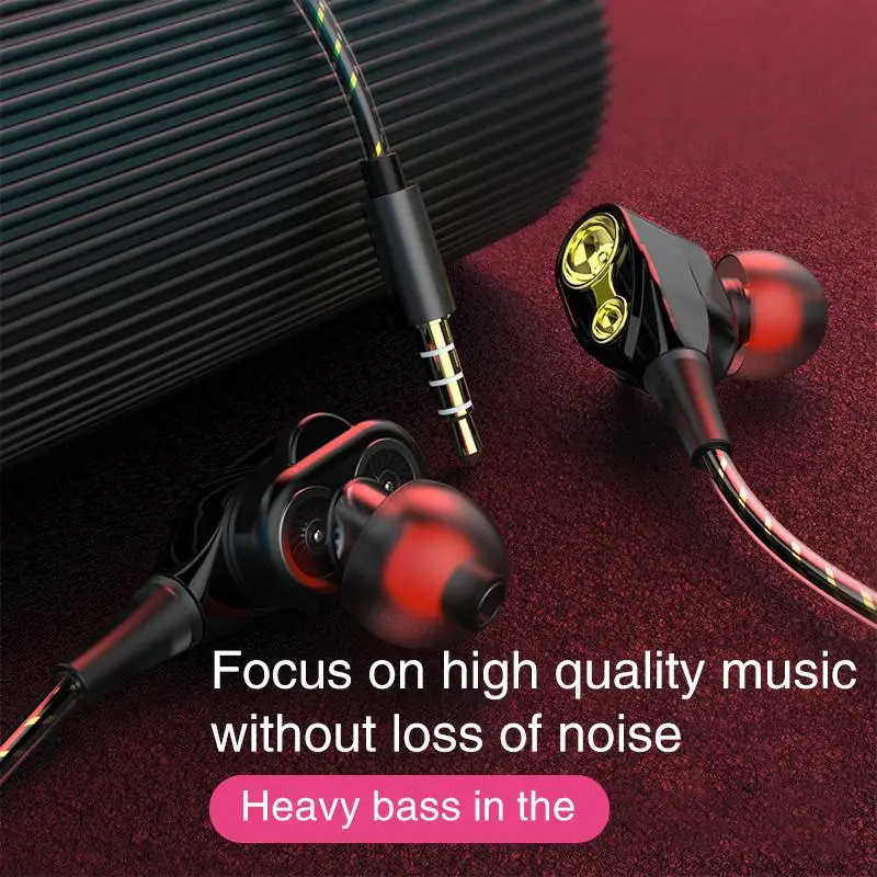 Проводные наушники с микрофоном и двойным движущимся микрофоном