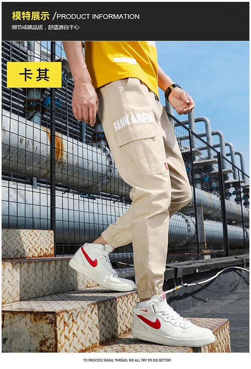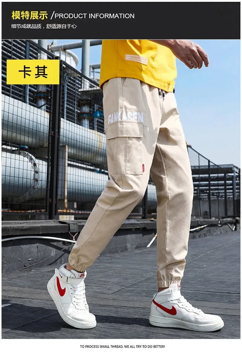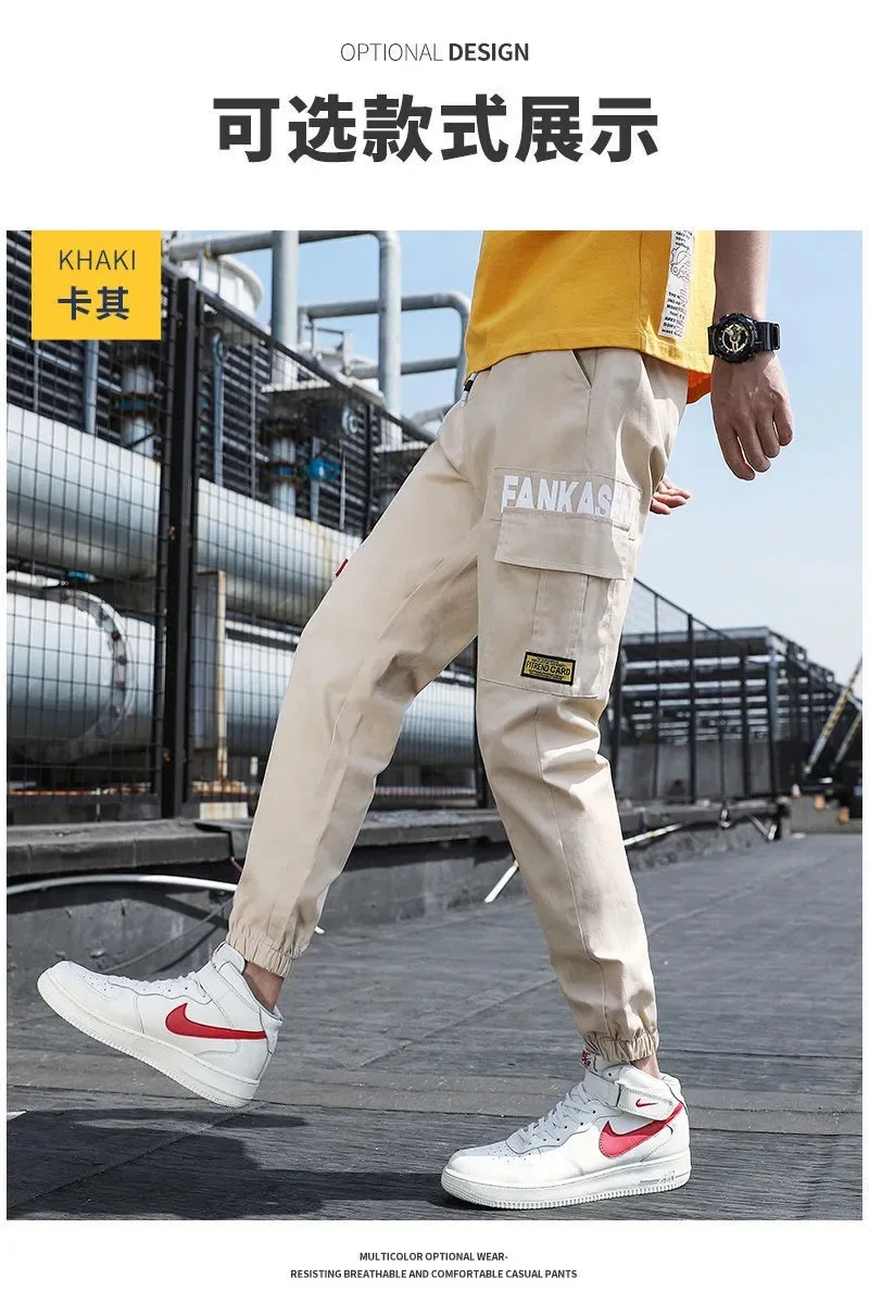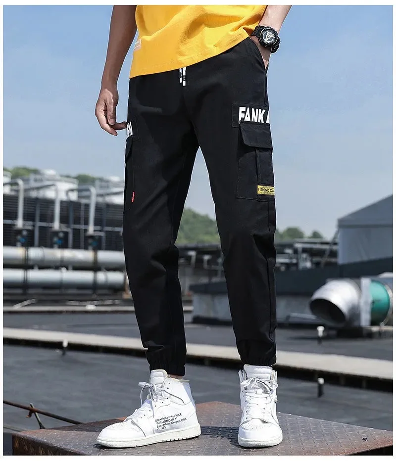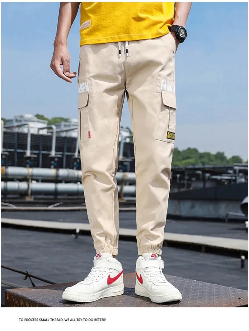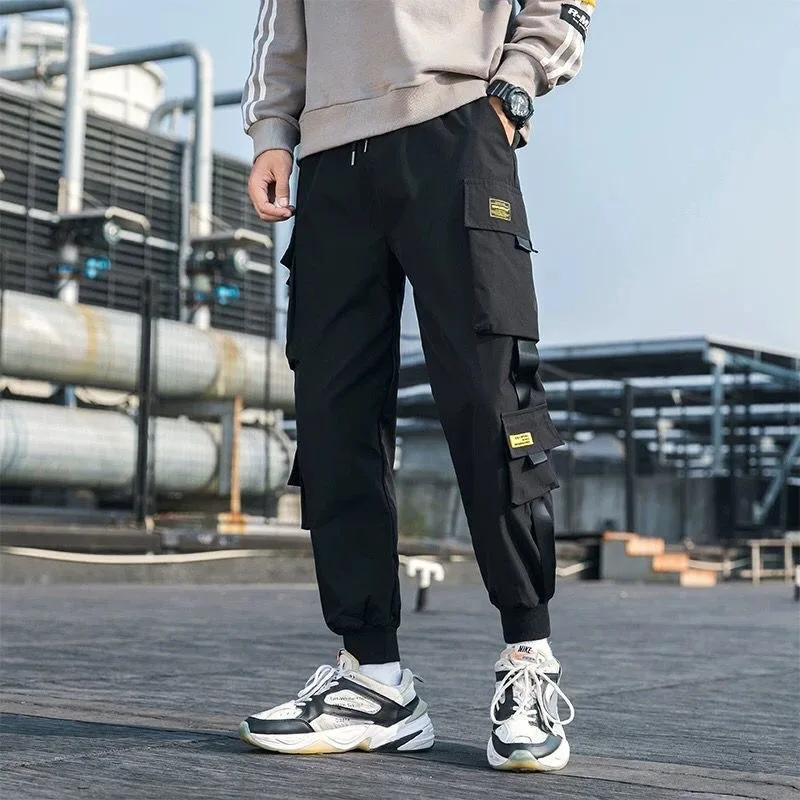 Джоггеры мужские с лентами, брюки-карго, повседневные тренировочные штаны в стиле хип-хоп, с карманами, уличная одежда, модные штаны в стиле Харадзюку, 2022