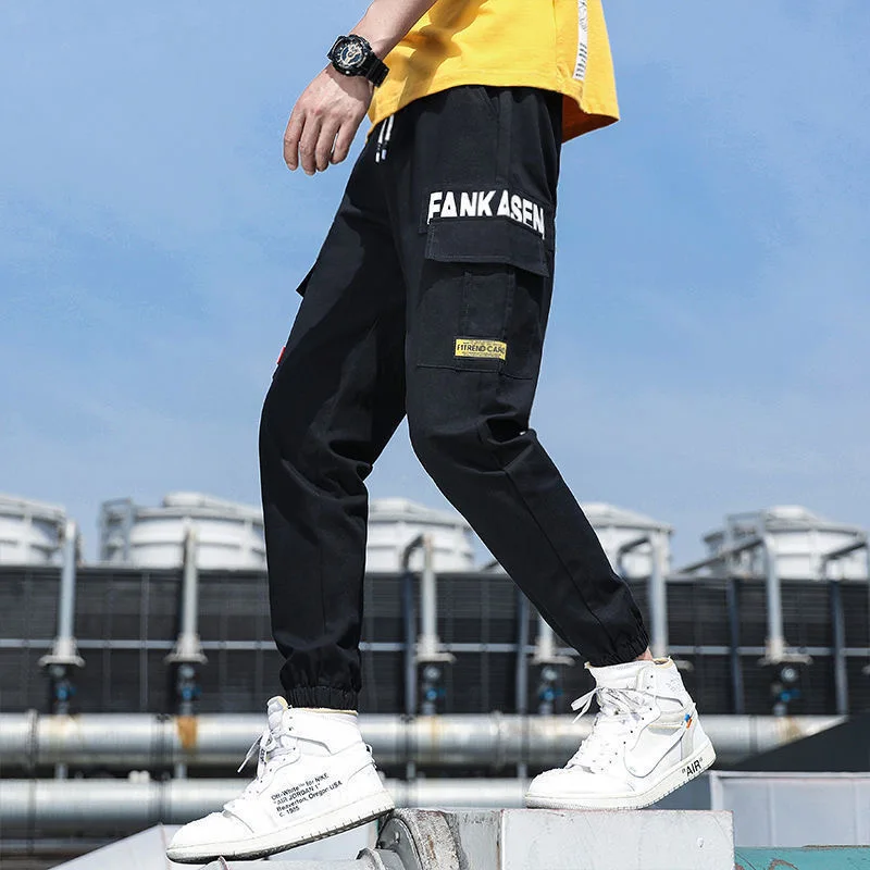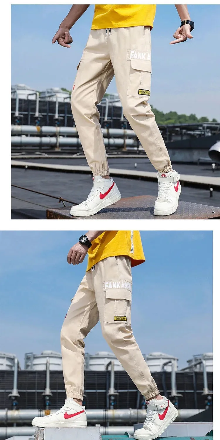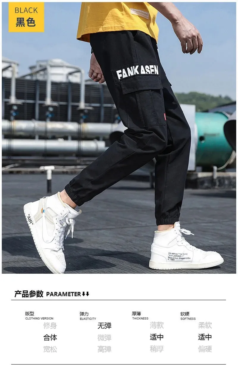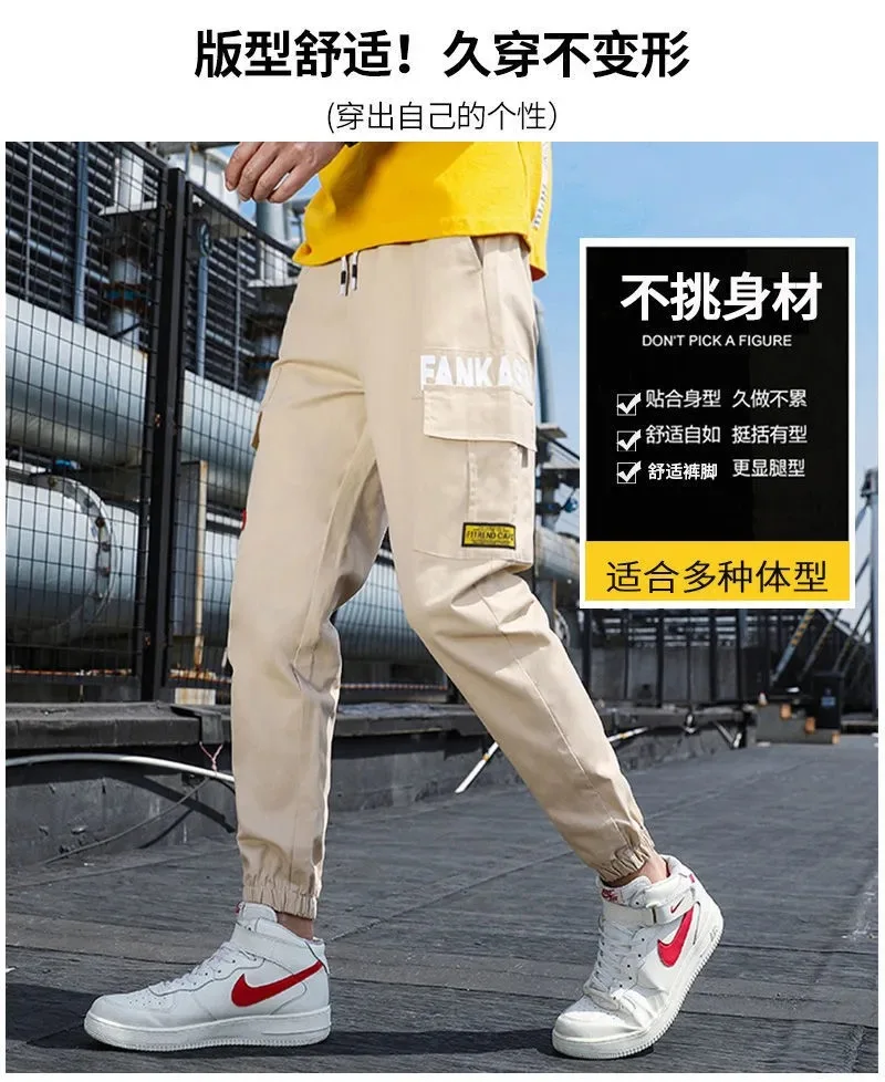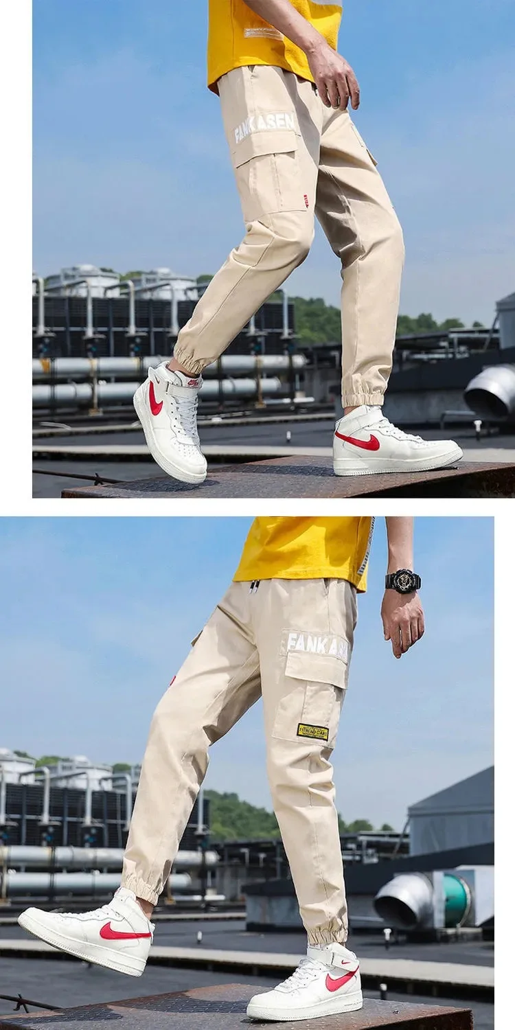 Джоггеры мужские с лентами, брюки-карго, повседневные тренировочные штаны в стиле хип-хоп, с карманами, уличная одежда, модные штаны в стиле Харадзюку, 2022