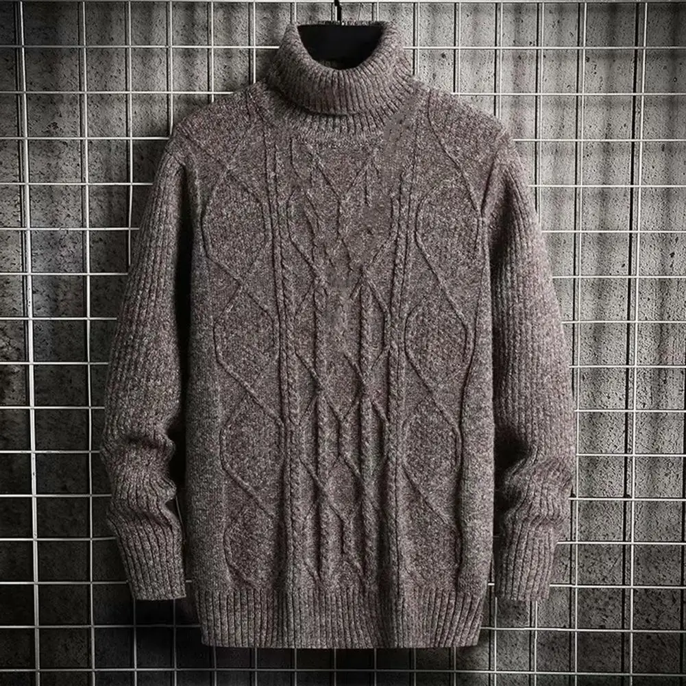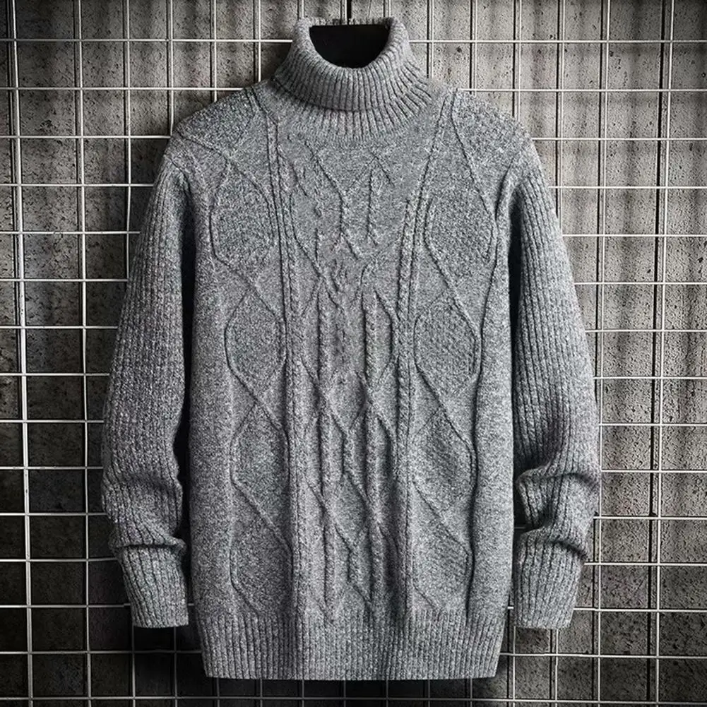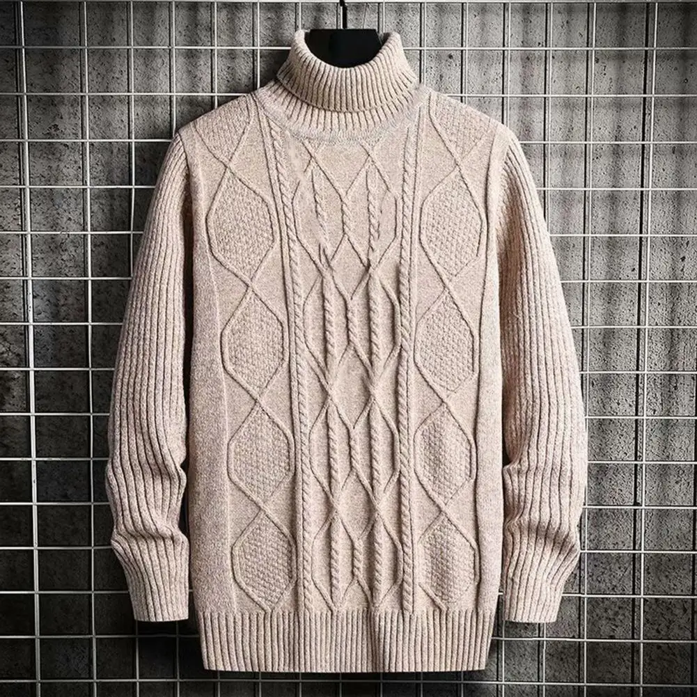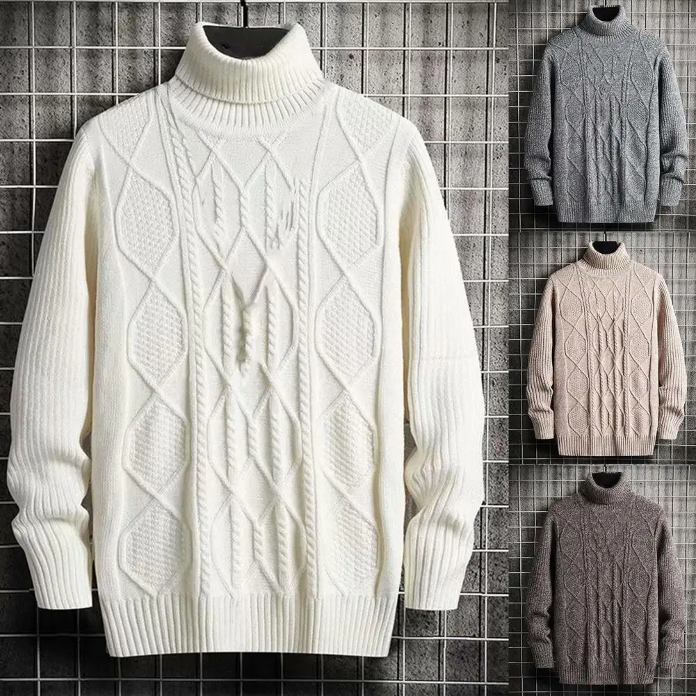 Свитер мужской однотонный с высоким воротником, винтажная плотная водолазка с витой текстурой, свободная уличная одежда, белый