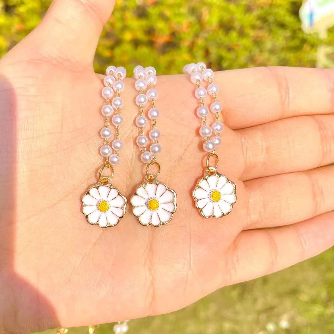 Женская цепочка с кулоном в виде цветка, с искусственным жемчугом