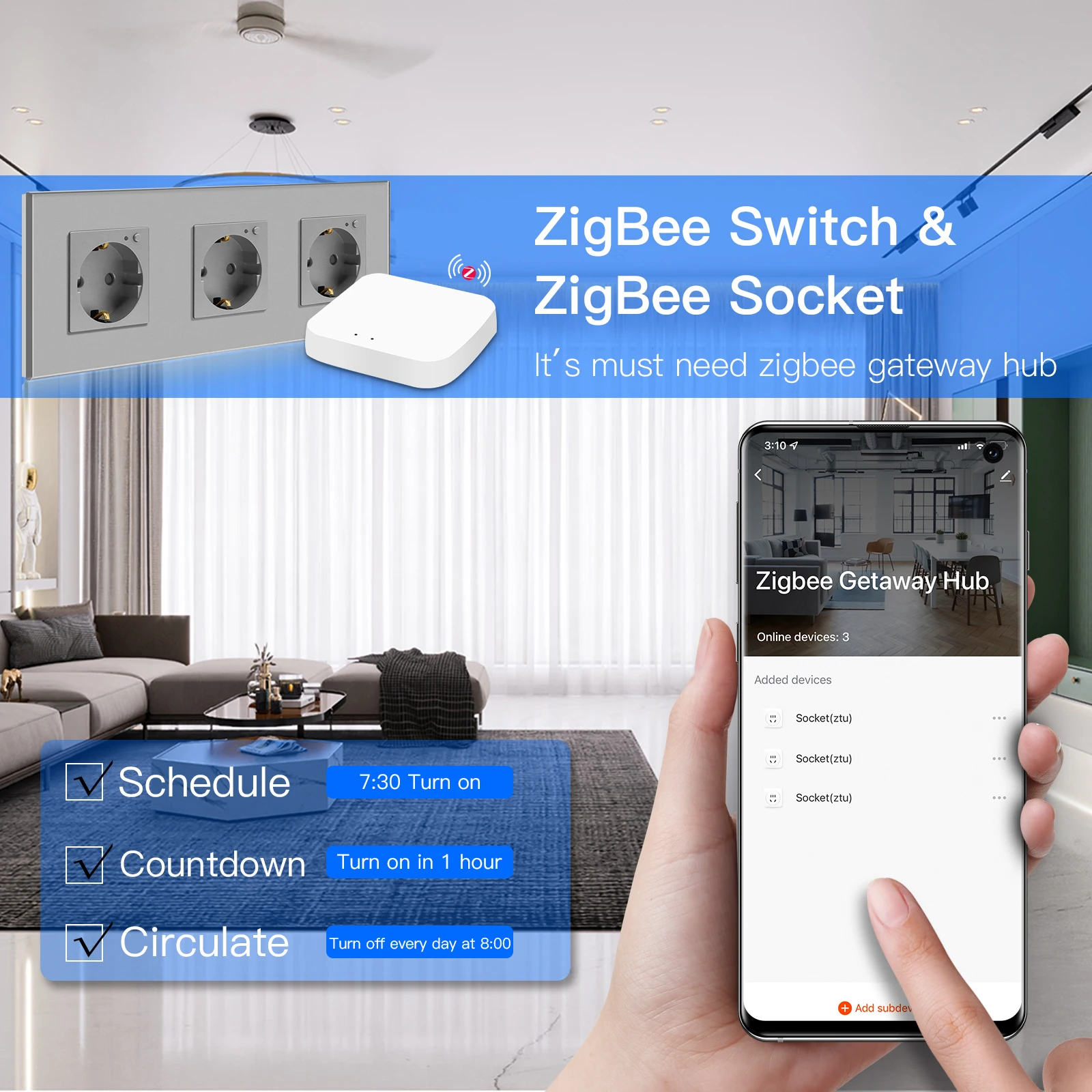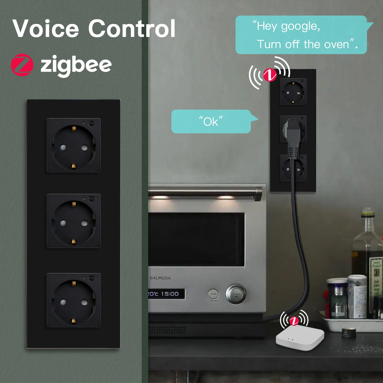 BSEED стандарт ЕС ZigBee настенные розетки тройные розетки 16А розетки для питания Стеклянная панель Поддержка Tuya App Google Alexa Голосовое управление