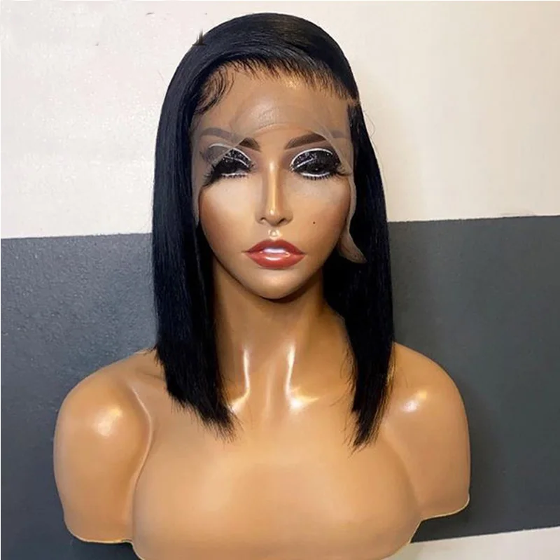 26 дюймов 180% Плотность мягкие короткие бобы натуральные черные прямые парики длинные парики на сетке спереди парик для женщин с ребенком волосы жаростойкие