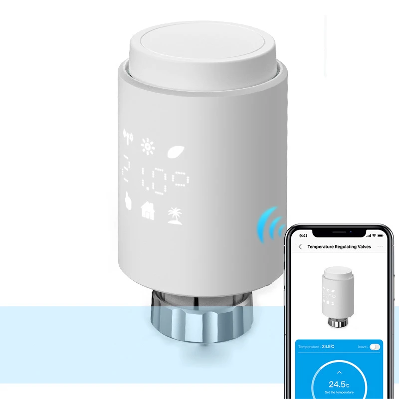 3. Термостат привода радиатора Smart For Tuya ZigBee: Новый мини-дизайн, корпус использует простой и четкий ЖК-экран, термостат радиатора использует цифровой ЖК-дисплей, питание от двух батарей AA, И сочетается с радиатором используется специальный клапан. Искусственно установите температуру в помещении, которая в основном используется для контроля открытия и закрытия трубопроводов в системе напольного отопления.