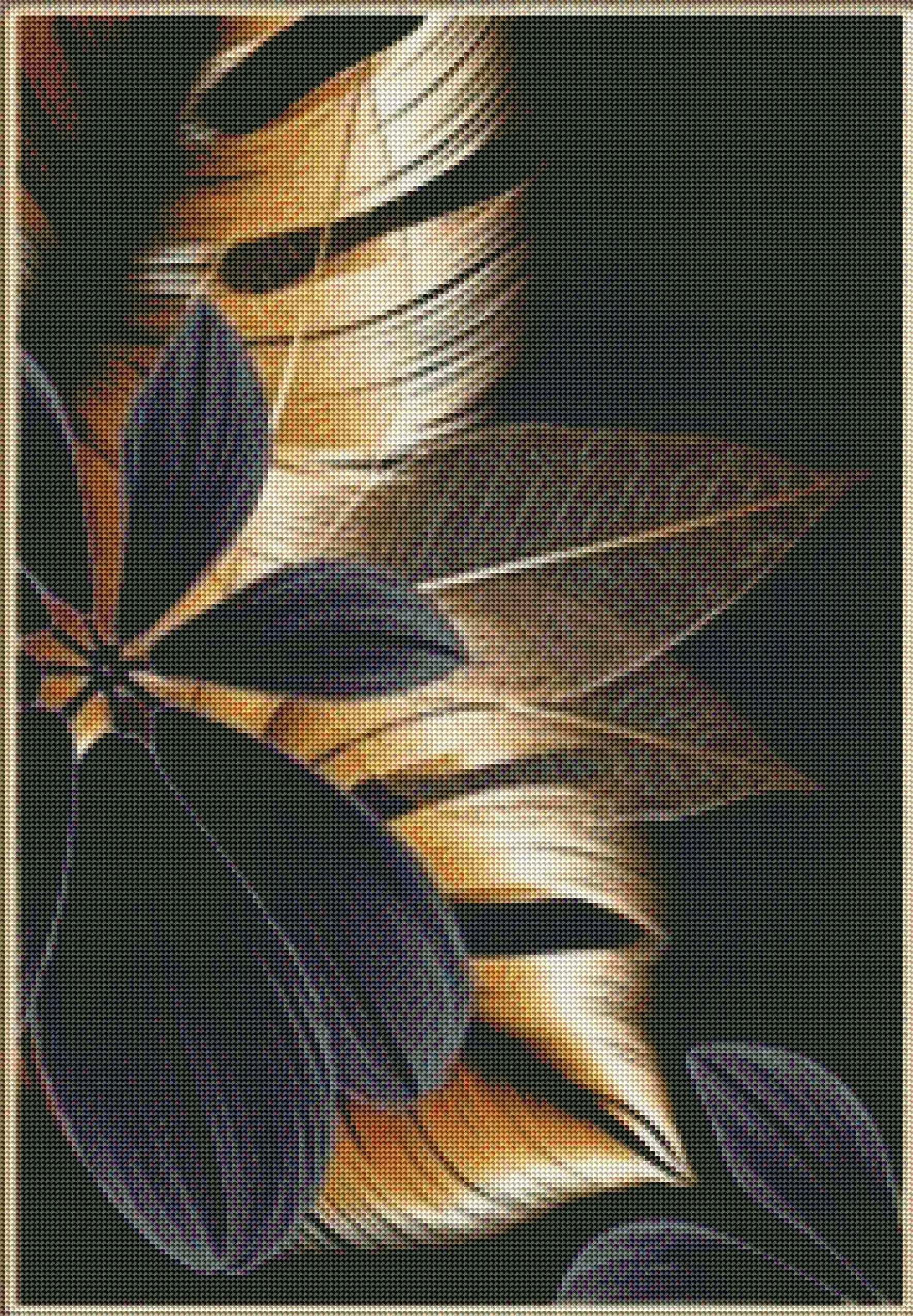 Черно-золотой цветок, большие листья, холст, картина, искусственные...