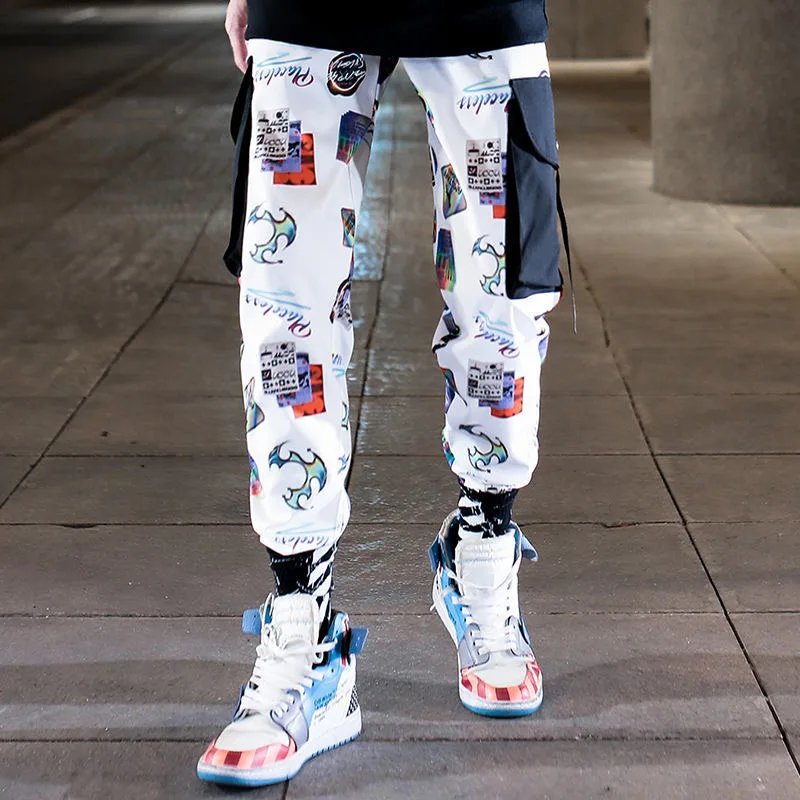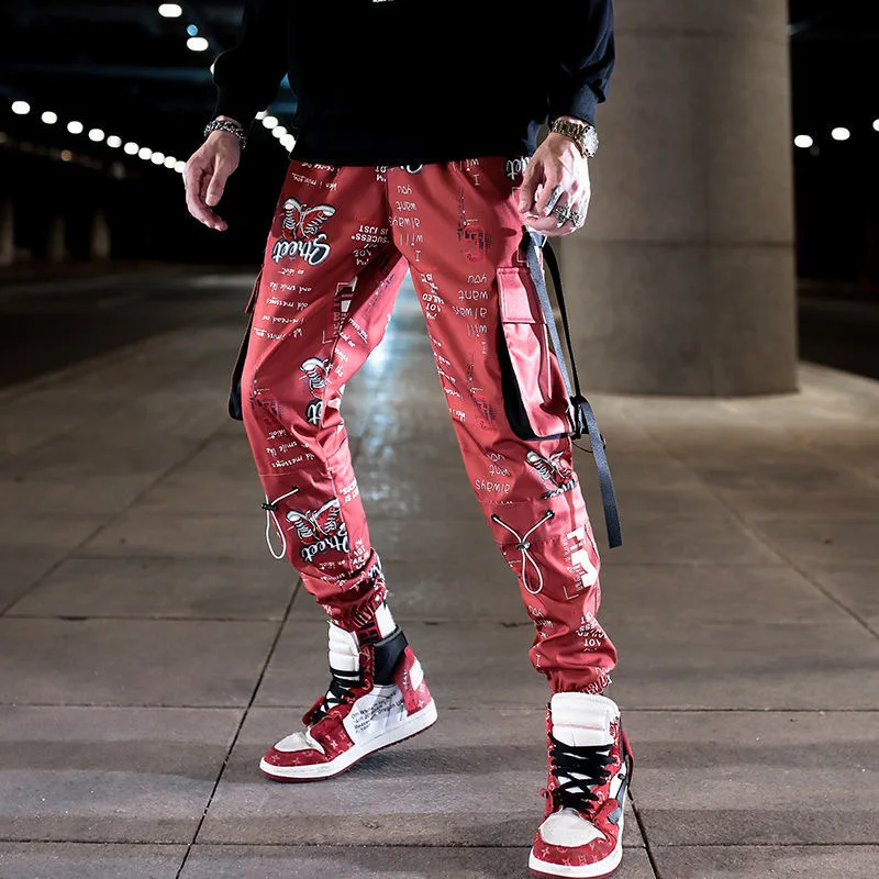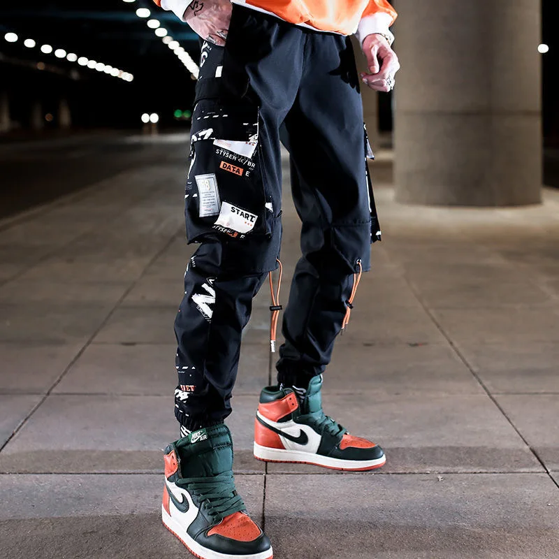 Мужские шаровары с лентами, уличные тренировочные брюки в стиле хип...