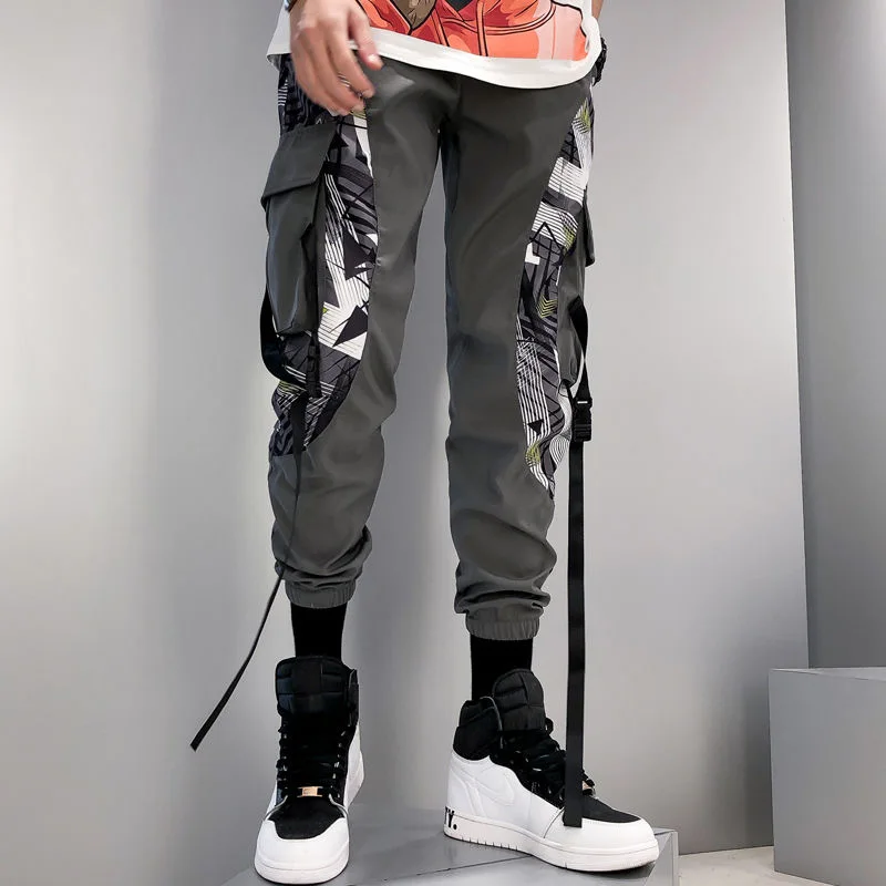 Джоггеры мужские с лентами, брюки-карго, повседневные тренировочные...