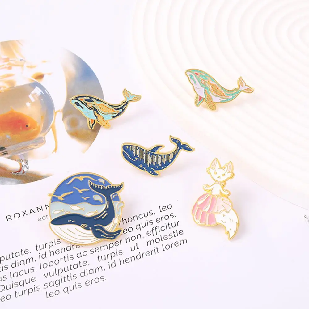 Эмалированная булавка в форме Кита, броши в форме горба мечты, Кита...