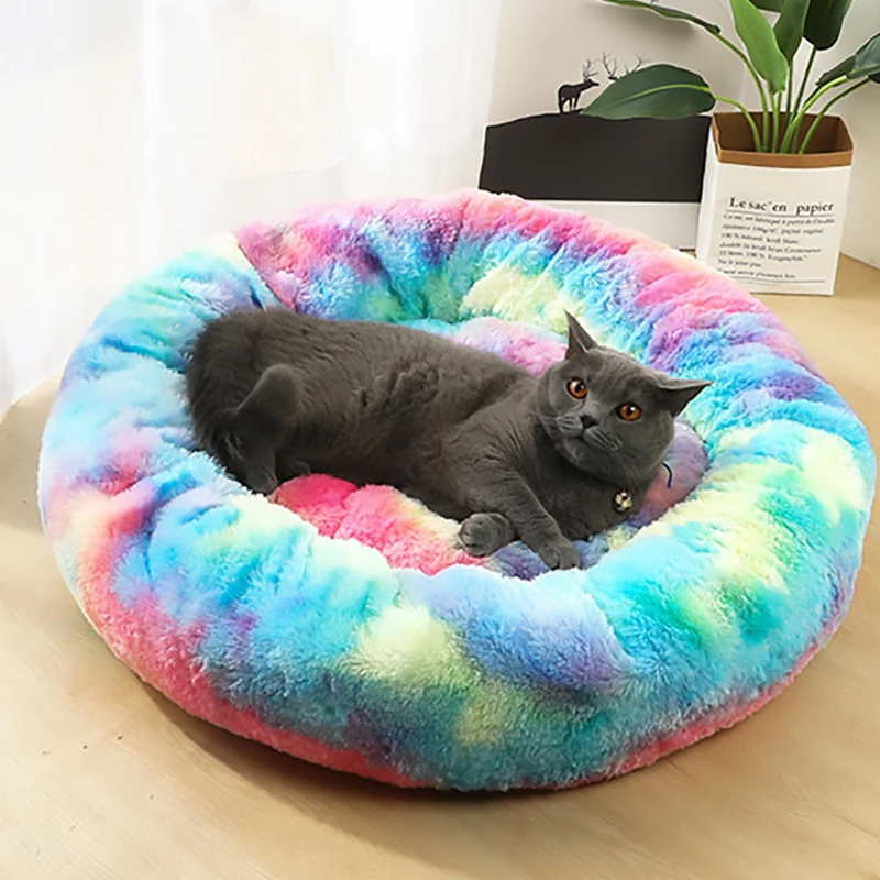 Мягкая кровать для кошек, кровати для собак, спальные плюшевые коврики для кошек, домик для котят, диван, питомник для щенков, красочная пушистая теплая удобная кровать для домашних животных