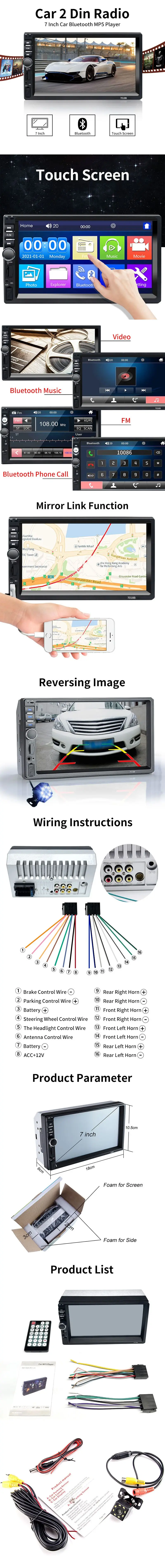 Hippcron Автомагнитола MP5 2 Din Bluetooth HD 7 "сенсорный экран стерео 12 В FM ISO Power Aux вход SD USB сбез камеры