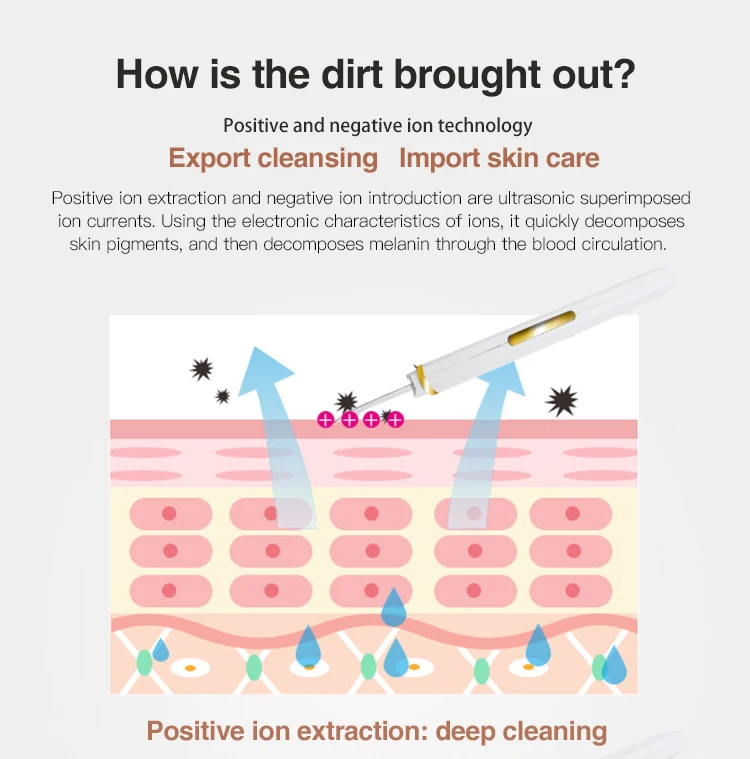 Высокочастотная вибрация проникает глубоко в кожу для улучшения черных точек кожи,