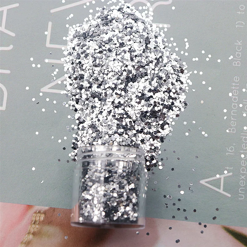 3D зеркальный Серебряный шестиугольный Блестящий Порошок для дизайн...