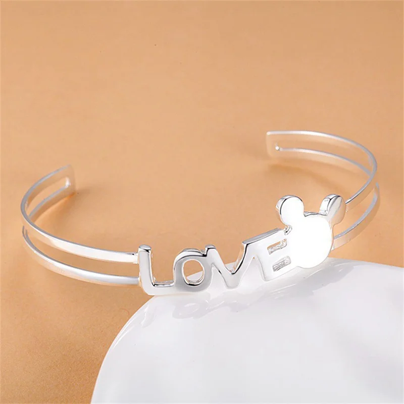 925 стерлингового серебра с Микки-Маусом открыть браслет для женщин...