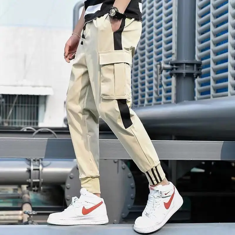 Джоггеры мужские с лентами, брюки-карго, повседневные тренировочные...