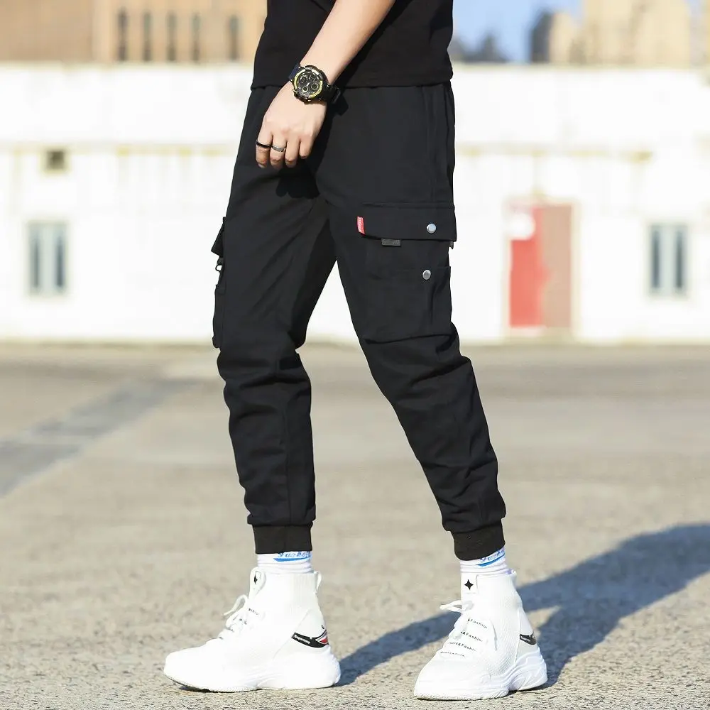 Брюки-карго мужские, черные, спортивные, в стиле Харадзюку