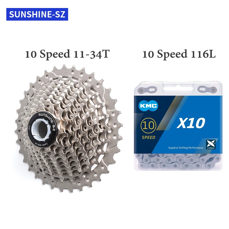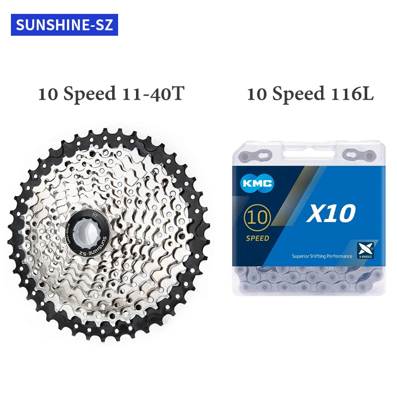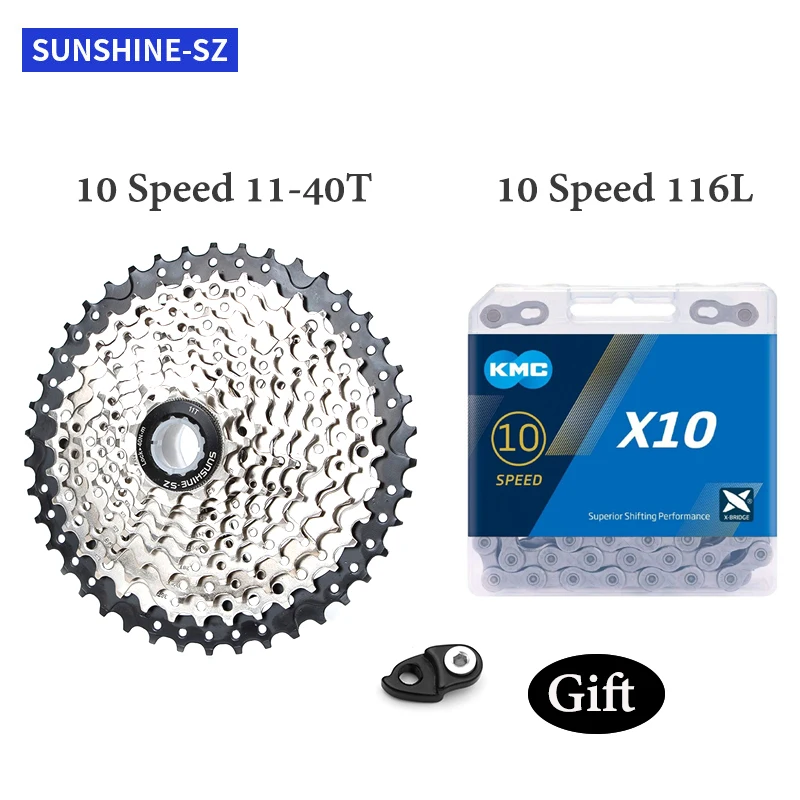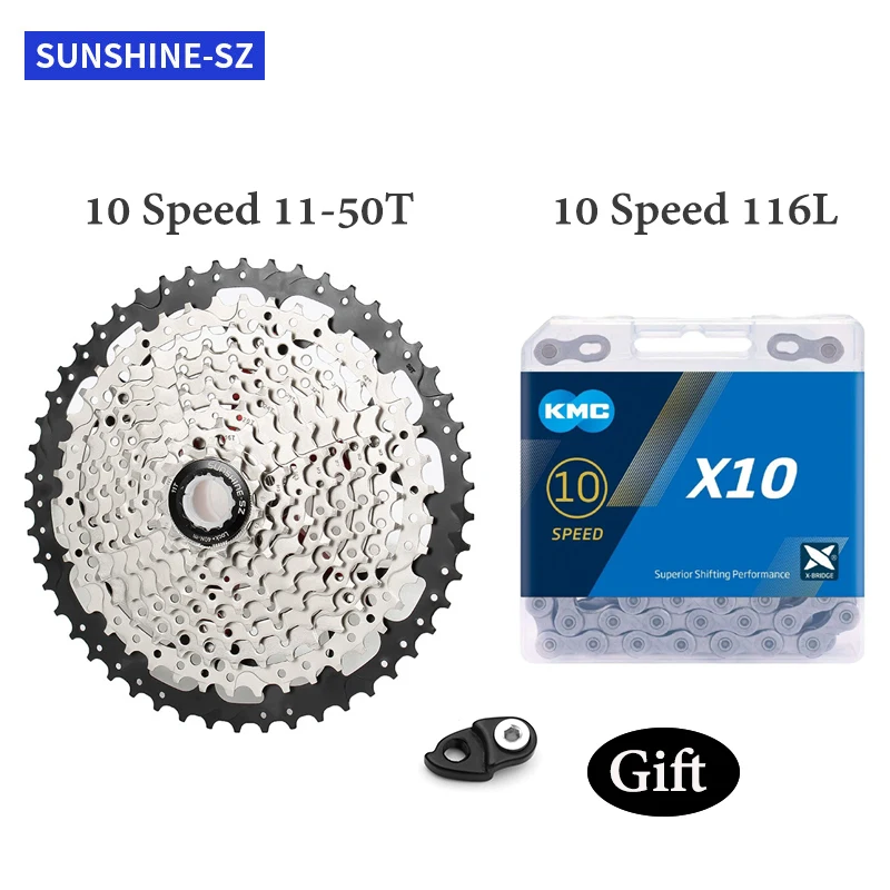 Велосипедная кассета SUNSHINE с 10 скоростями, комплект велосипедных цепочек KMC X10, 11-32T36T40T42T46T50T 10V, велосипедный свободный круг для горного велосипеда с цепью