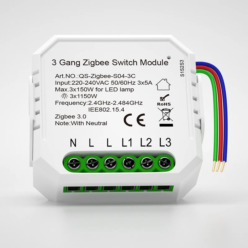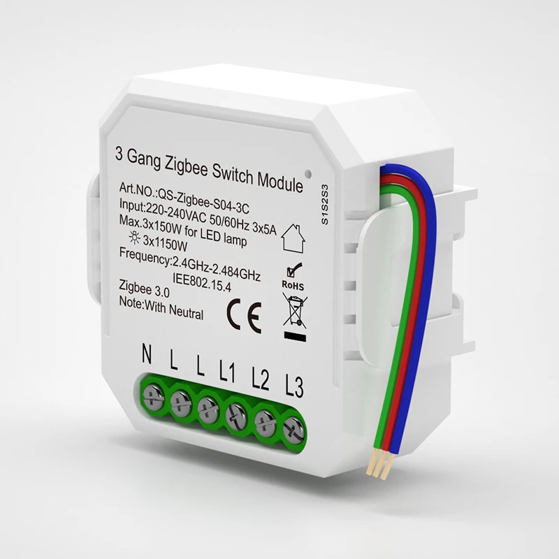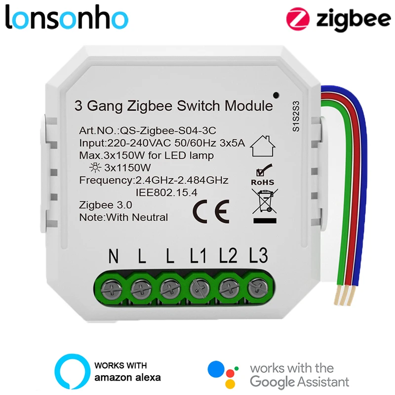 Умный коммутационный модуль Lonsonho Tuya Zigbee, реле с 3 клавишами, с нейтральным управлением, светильник с Alexa Google Home