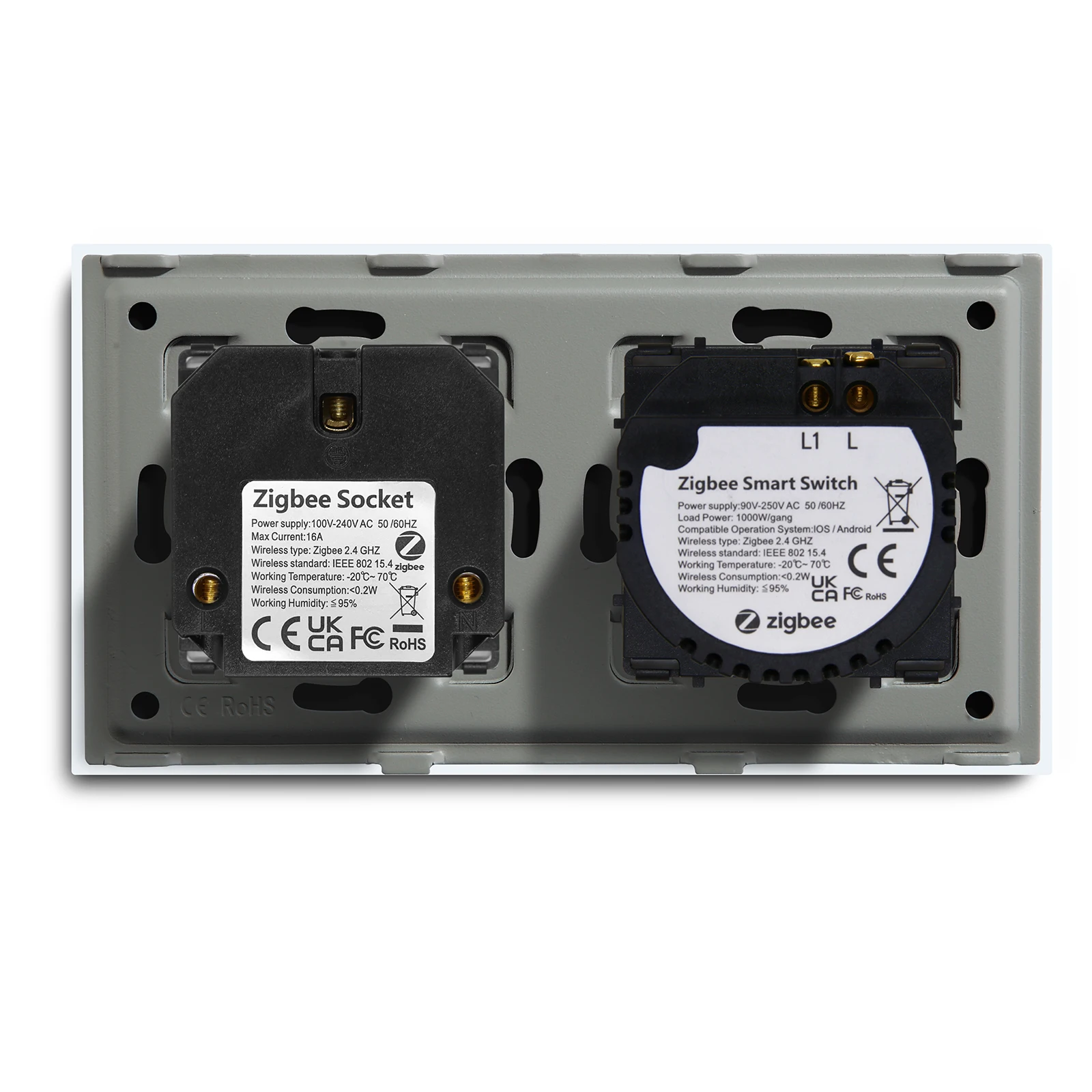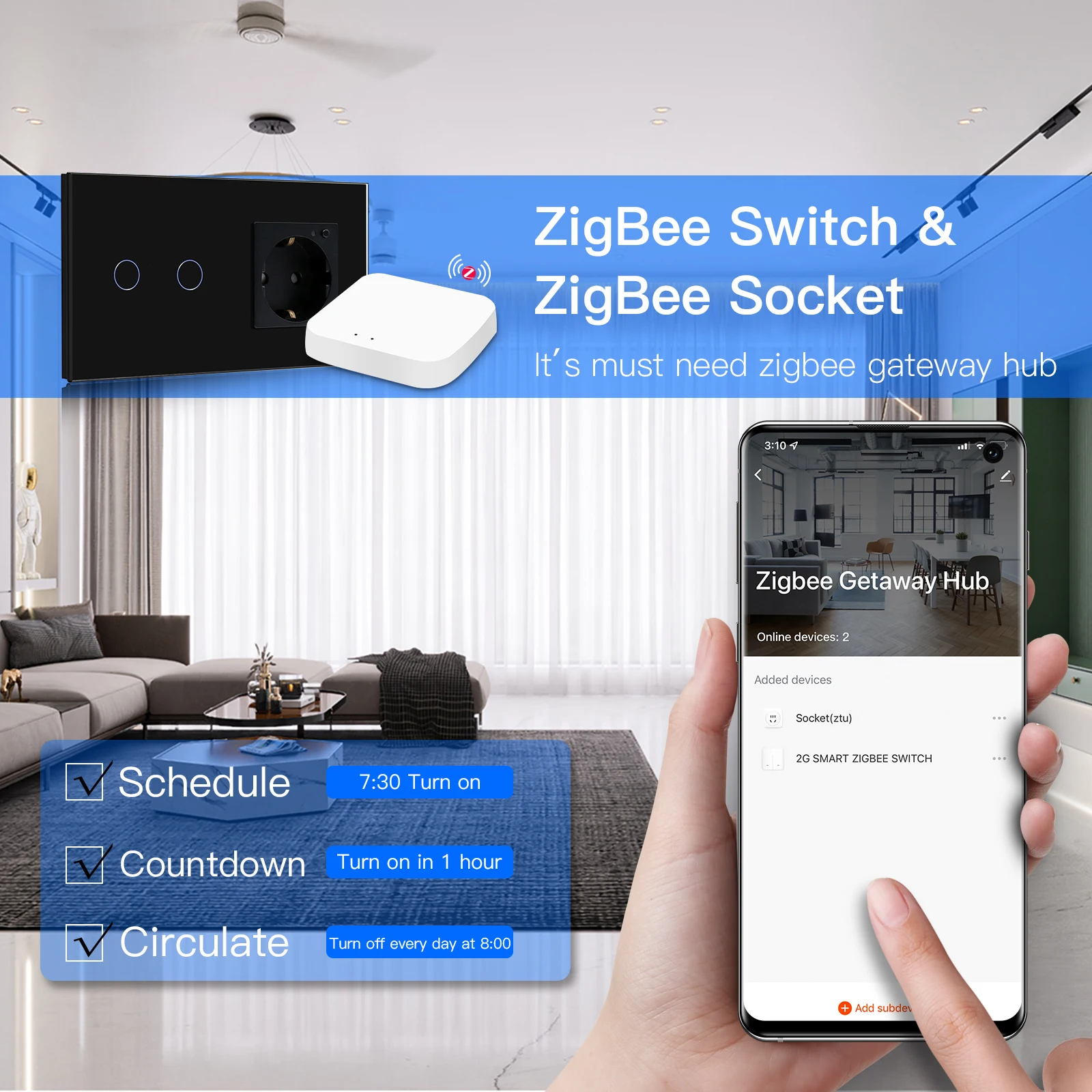 Умный сенсорный выключатель BSEED ZigBee, розетка ZigBee европейского стандарта, черная, белая, серая стеклянная панель, 123 клавиши, 1 канал, Настенные переключатели света