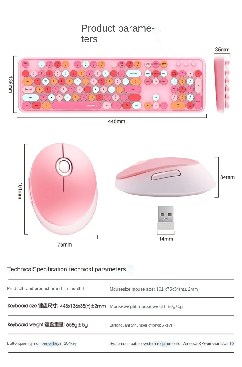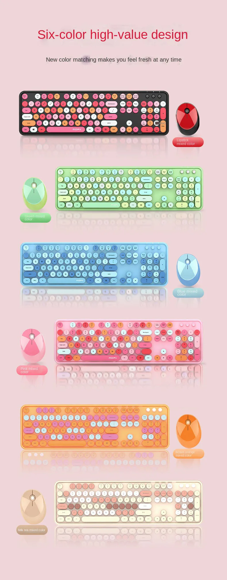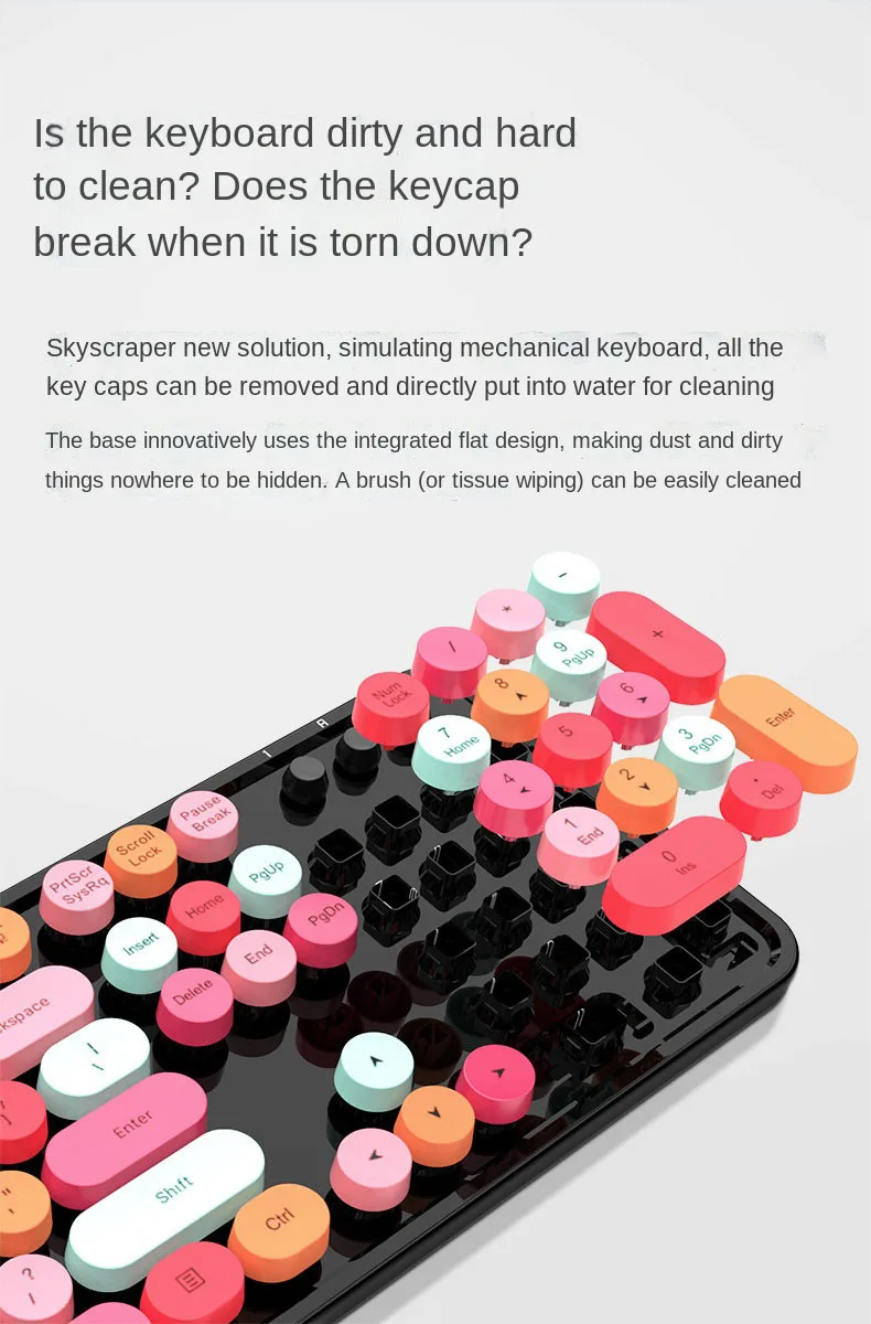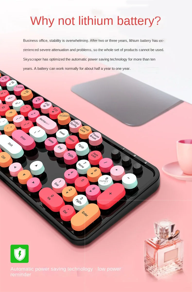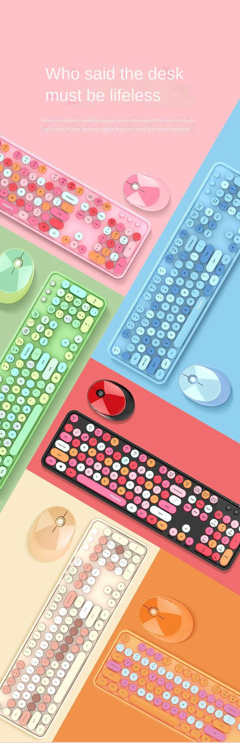 Беспроводная игровая клавиатура и мышь, мультимедийные круглые колп...