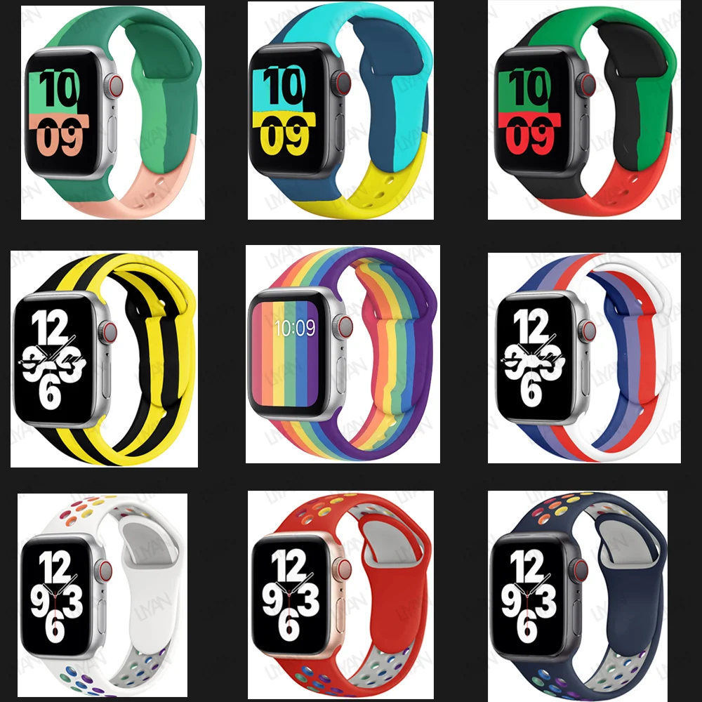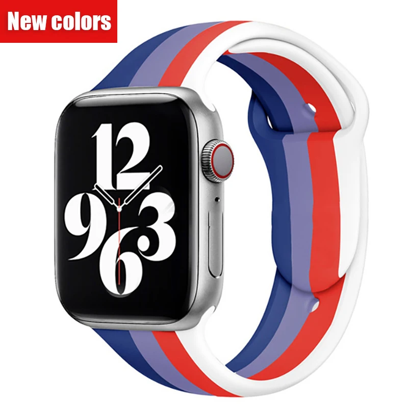 Ремешок Rainbow спортивный силиконовый для Apple Watch, черный браслет для iWatch Series 7 6 se 5 4 3 4044 мм 4541 мм, 42 мм 38 мм