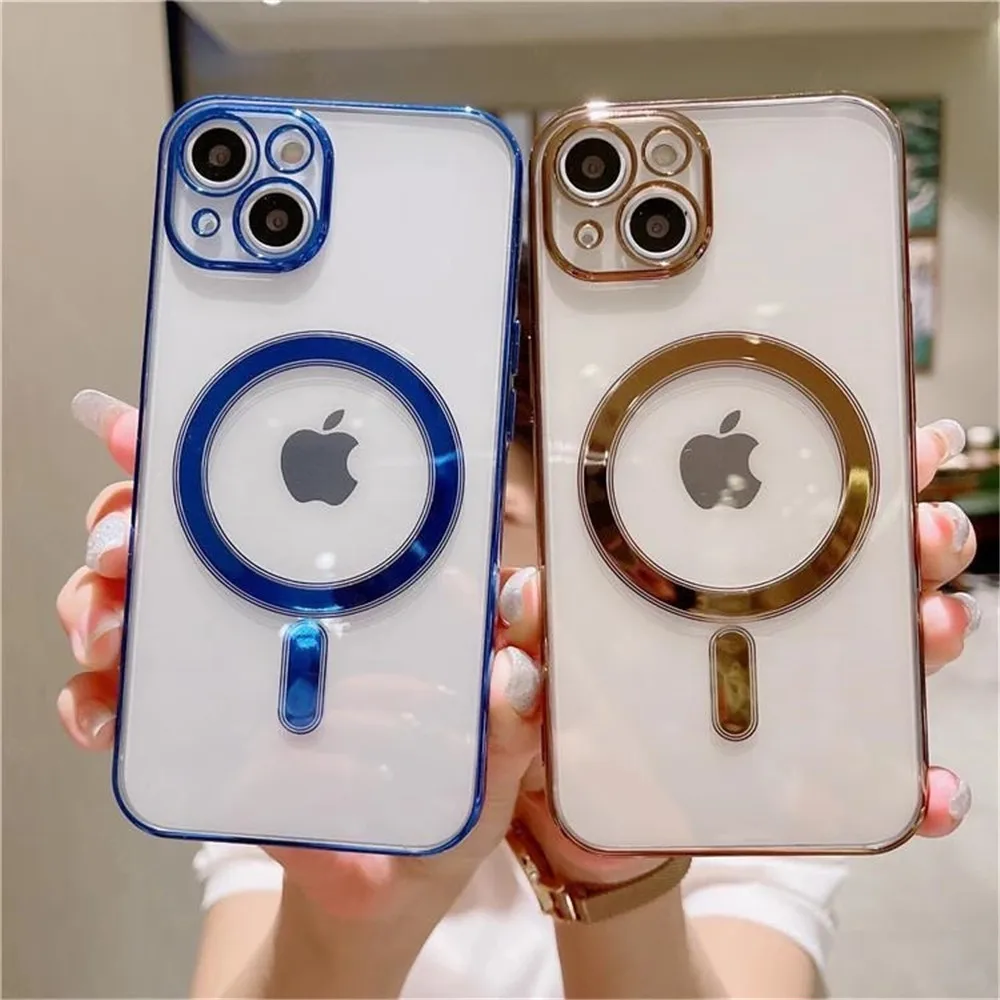 Прозрачный Магнитный чехол для iPhone 13 12 11 Pro Max, гальванизир...