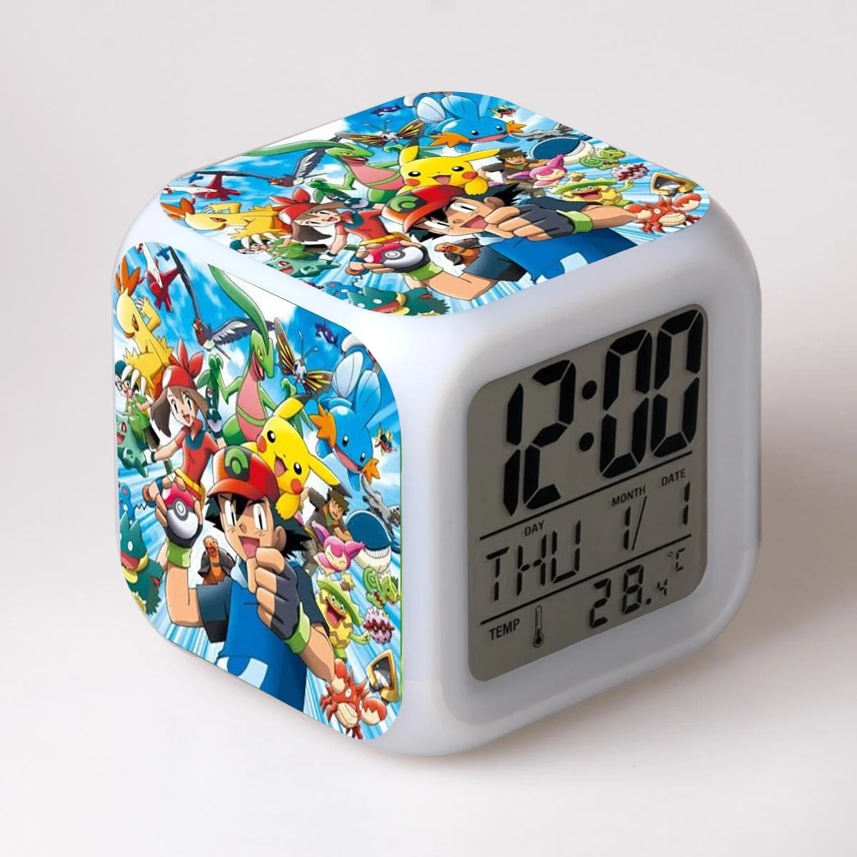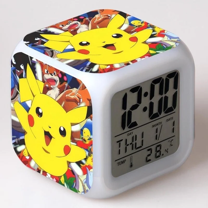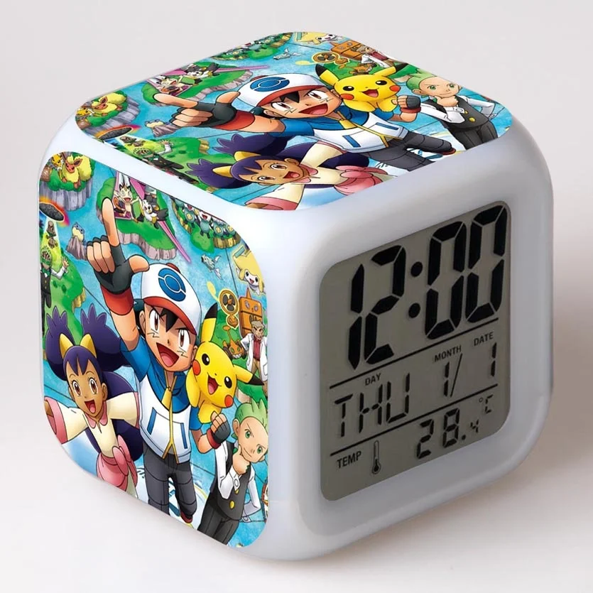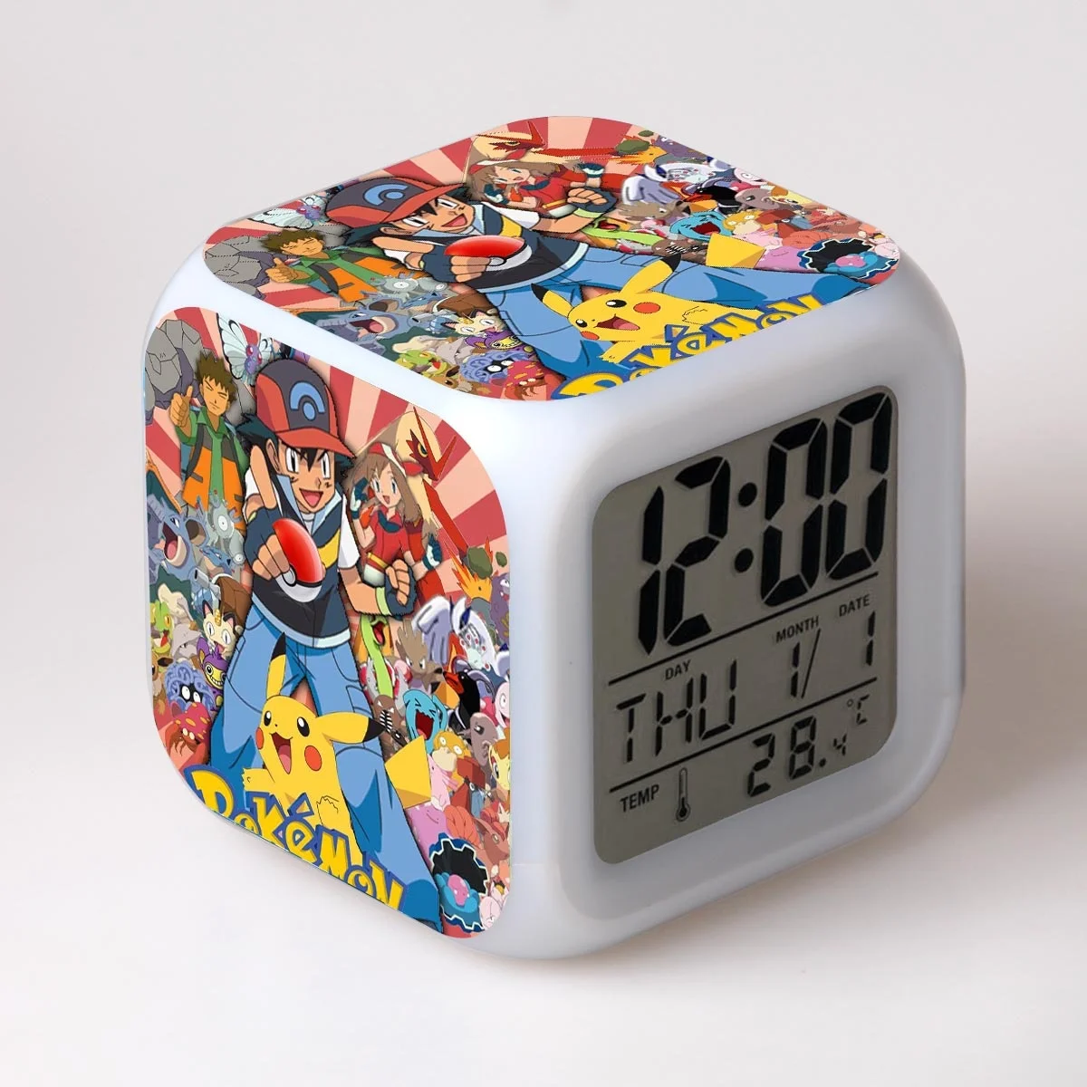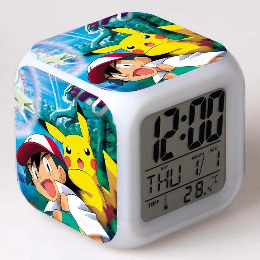 Фигурка покемона Королевская битва Пикачу, светящийся светодиодный цветной будильник, Настольная игрушка с термометром, подарок для детей