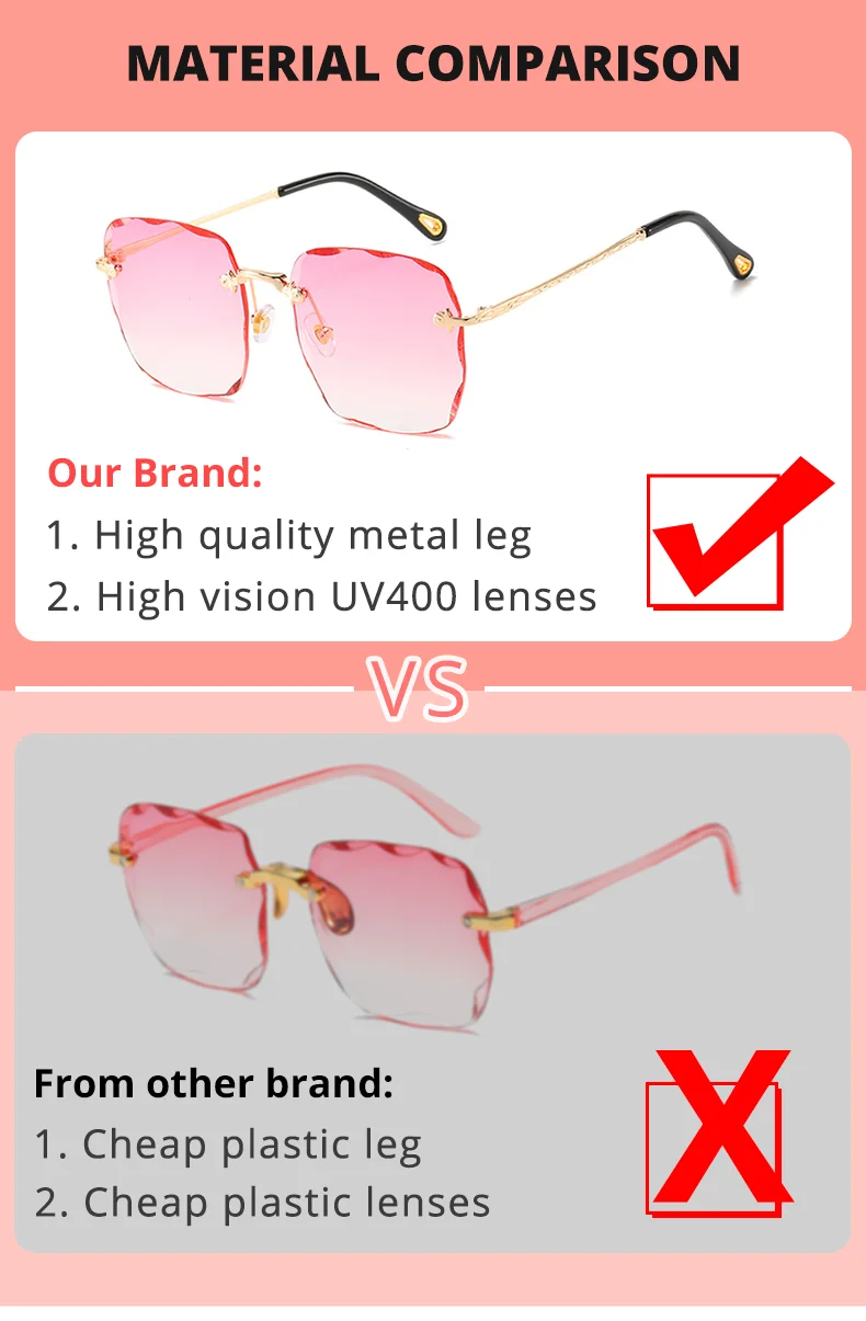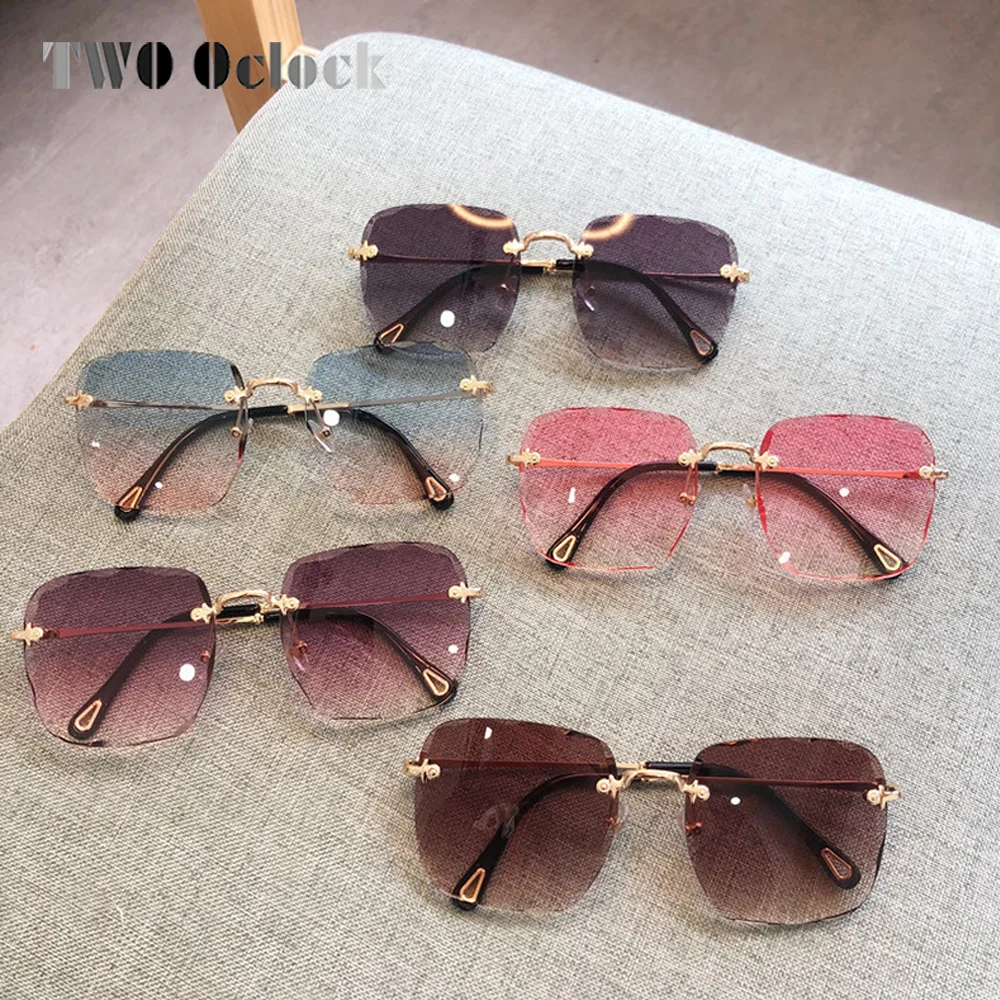 Очки солнцезащитные женские без оправы, брендовые дизайнерские градиентные солнечные очки с режущими линзами UV400, без оправы