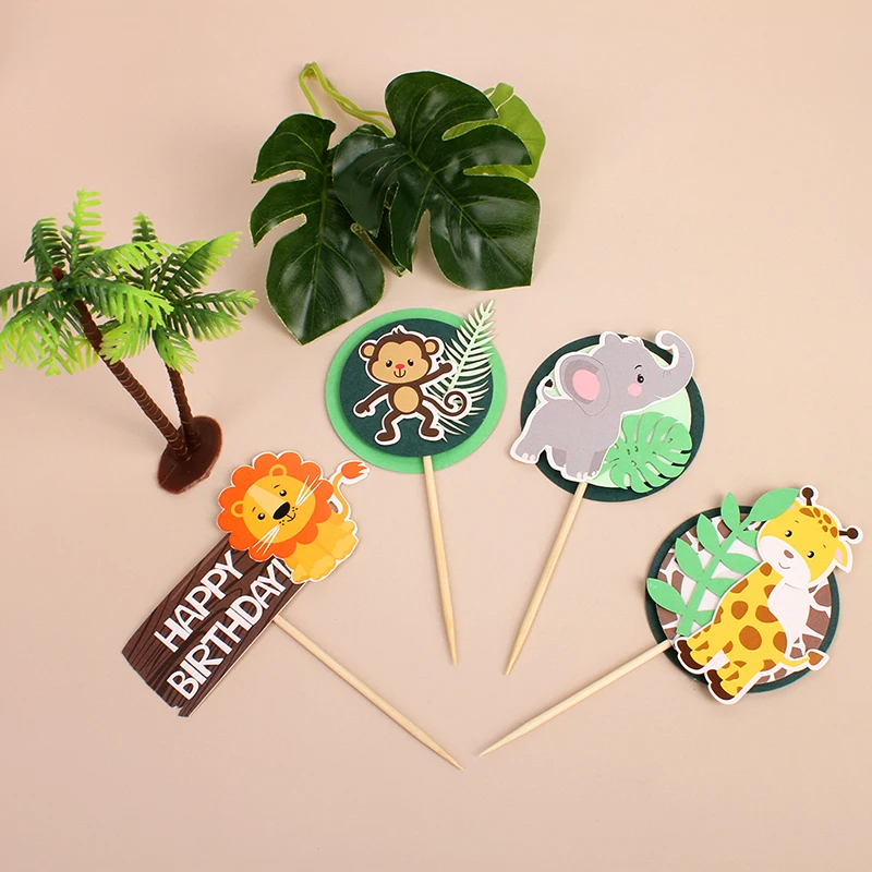 дикий амимал торт украшение охота на джунгли животные торт флаг пальма мальчик день рождения девочка украшать детский лес